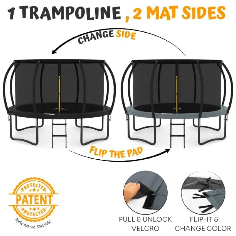 A instalação da rede de trampolim do Backyard do Backyard Jumpzylla foi aperfeiçoada para levar apenas alguns minutos e nossas almofadas de capa de mola patenteadas e duplas levam apenas um minuto para instalar ou virar graças ao sistema de velcro e intuitivo