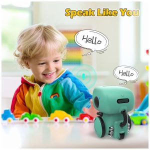 O Robô ATRobot é um companheiro de diversão incrível para crianças! Ele pode ser controlado por voz e toque, se movimenta para frente, para trás, vira à esquerda, à direita e faz giros de 360 graus. Além disso, ele canta, dança e conversa com as crianças. Com modos de trabalho, gravação e descanso, o ATRobot pode gravar até 3 mensagens de voz de 8 segundos cada. Ele reconhece comandos de voz e responde de forma inteligente, desligando ao ouvir ‘adeus, dormir’ e ligando novamente com um simples toque. Com olhos de LED, ele não apenas fala a língua dos robôs, mas também repete tudo o que a criança diz, incentivando a pronúncia e exercitando as habilidades de linguagem. Com um tamanho inteligente de 10 x 9,5 x 13 cm, é um presente ideal para crianças de 3 a 9 anos de idade, podendo ser levado e usado em qualquer lugar.
