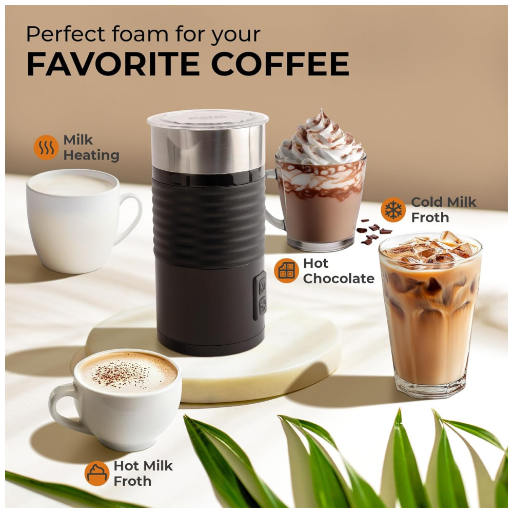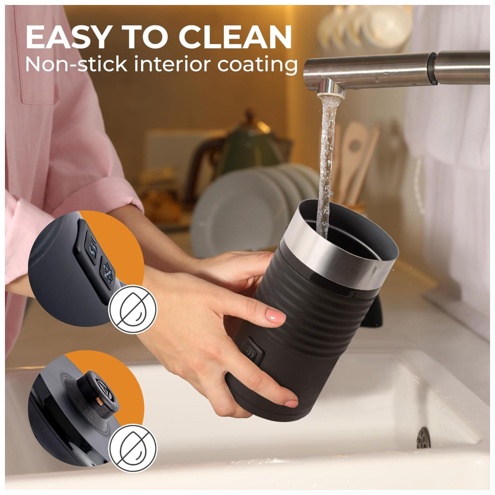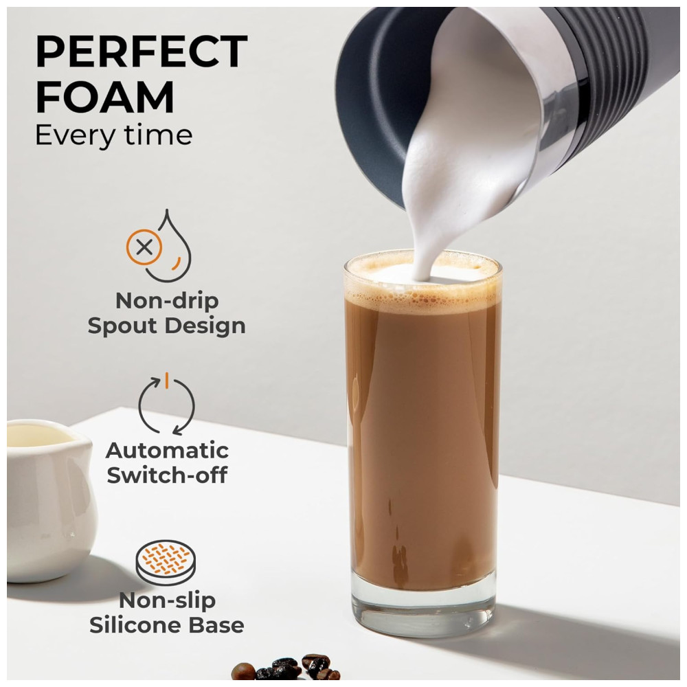 Transforme seu leite em espuma em questão de segundos com o Espumador de Leite Elétrico 4 em 1 da Kaffè. Desfrute de cafés deliciosos, lattes sedosos, cappuccinos, macchiatos ou chocolates quentes em menos de meio minuto. Com modos quente e frio, você pode aquecer e espumar o leite, ou apenas espumar. Fácil de limpar com revestimento antiaderente, basta enxaguar para estar pronto para a próxima bebida. Surpreenda amigos e familiares com espuma de cafetaria no conforto da sua casa.