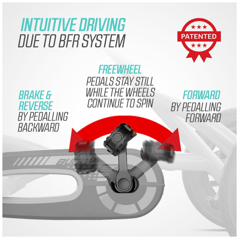 FÁCIL DE OPERAR O BERG Buddy inclui um sistema BFR, que significa freio, roda livre e ré. Com um sistema BFR, o Berg Buddy Redster permite que você freie com os pedais e dê marcha à ré depois de parar, para que você possa passear facilmente neste kart para crianças.