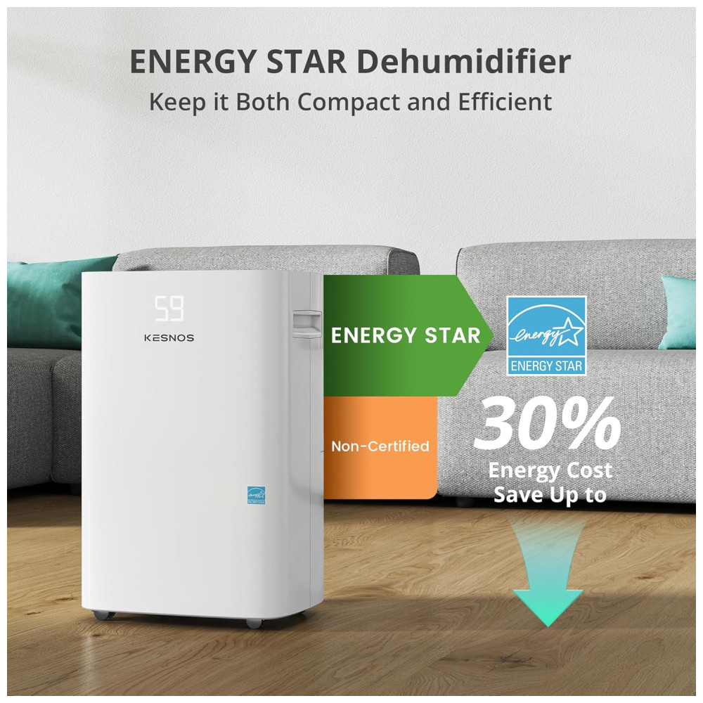 Design exclusivo para a casa moderna este desumidificador portátil Kesnos é projetado com uma aparência elegante e moderna, com rodas ocultas de fácil rotação 360 e alças ergonomicamente embutidas, você pode mover este desumidificador de porão facilmente. Com a função de roupa seca, basta colocar o desumidificador com mangueira de esgoto numa divisão onde pode pendurar a roupa molhada e deixar secar naturalmente.