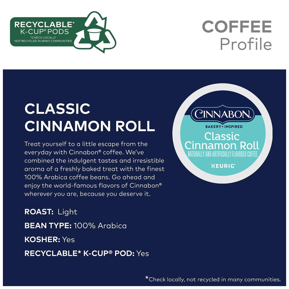 Cápsulas Keurig K Cup Canela de café com sabor Rolo de canela clássico 24 unidades