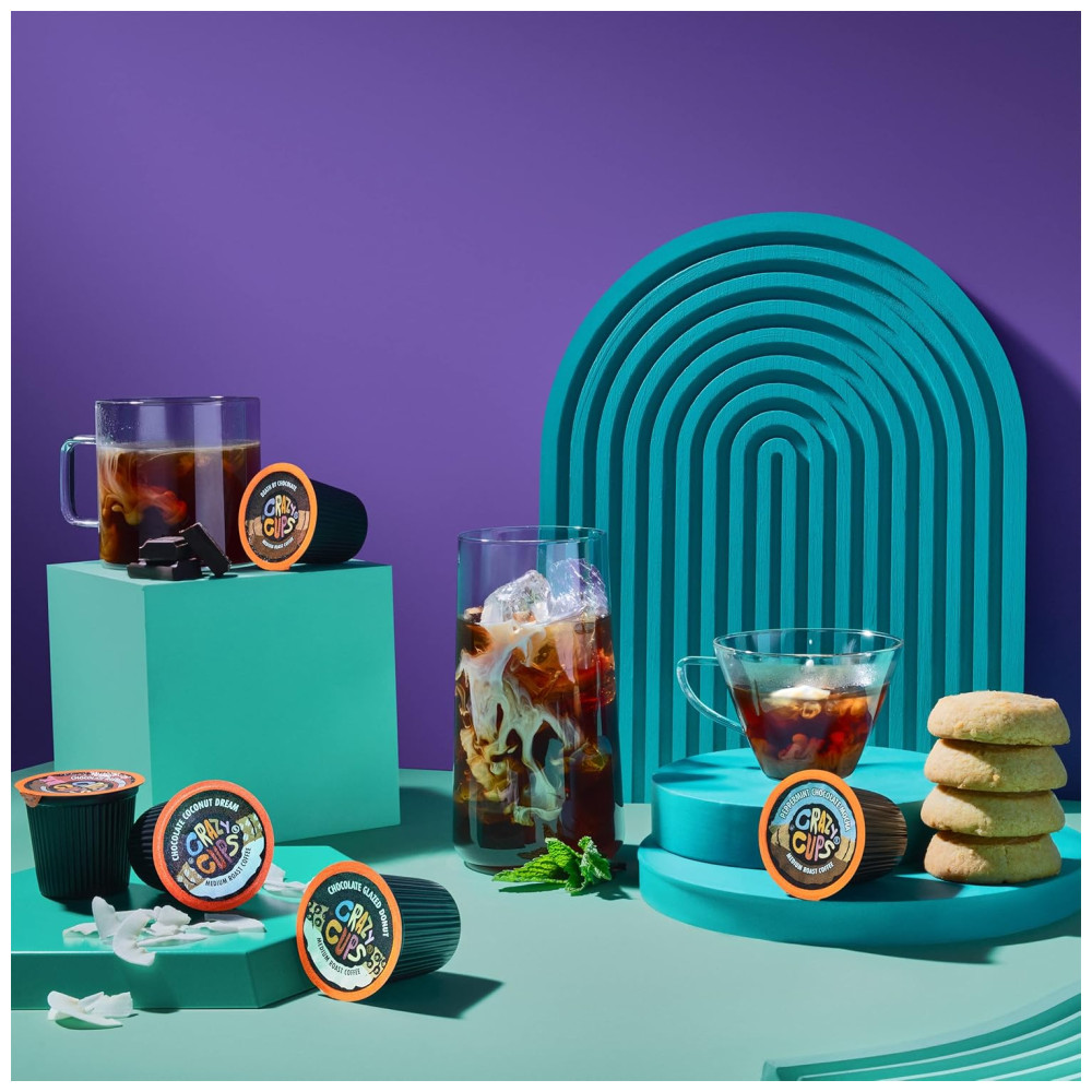 Crazy Cups sabor café para máquinas Keurig K Cup, trufa de framboesa com chocolate, bebidas quentes ou geladas, 80 doses individuais, cápsulas recicláveis