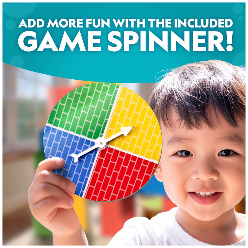 Número de peças: 40 tijolos em 3 tamanhos, 1 spinner de jogo, cartões de atividade