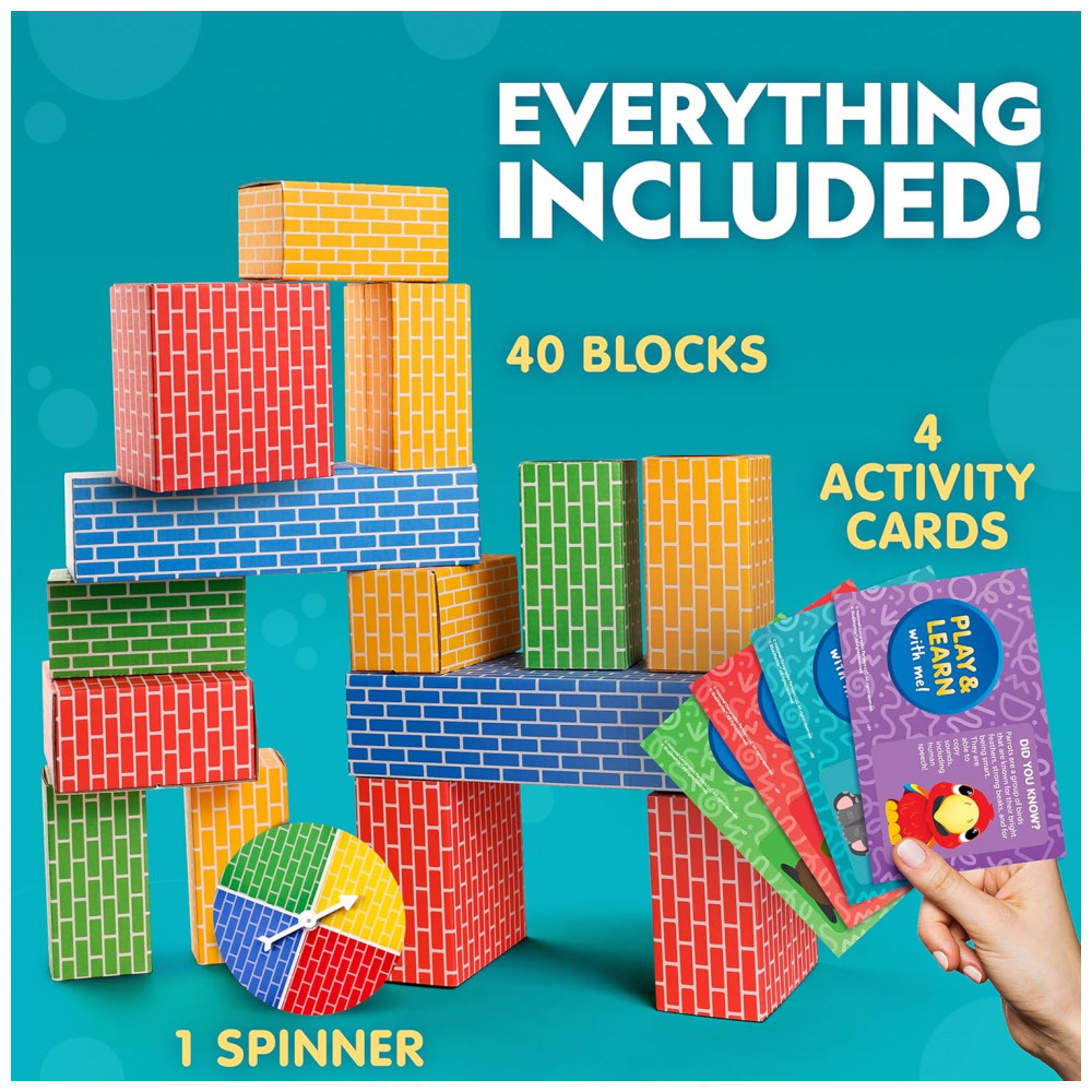 Kids Jumbo Cardboard Building Blocks – 40 Tijolos em 3 Tamanhos com Spinner e Cartões de Atividade Brinquedo Educativo STEM National Geographic