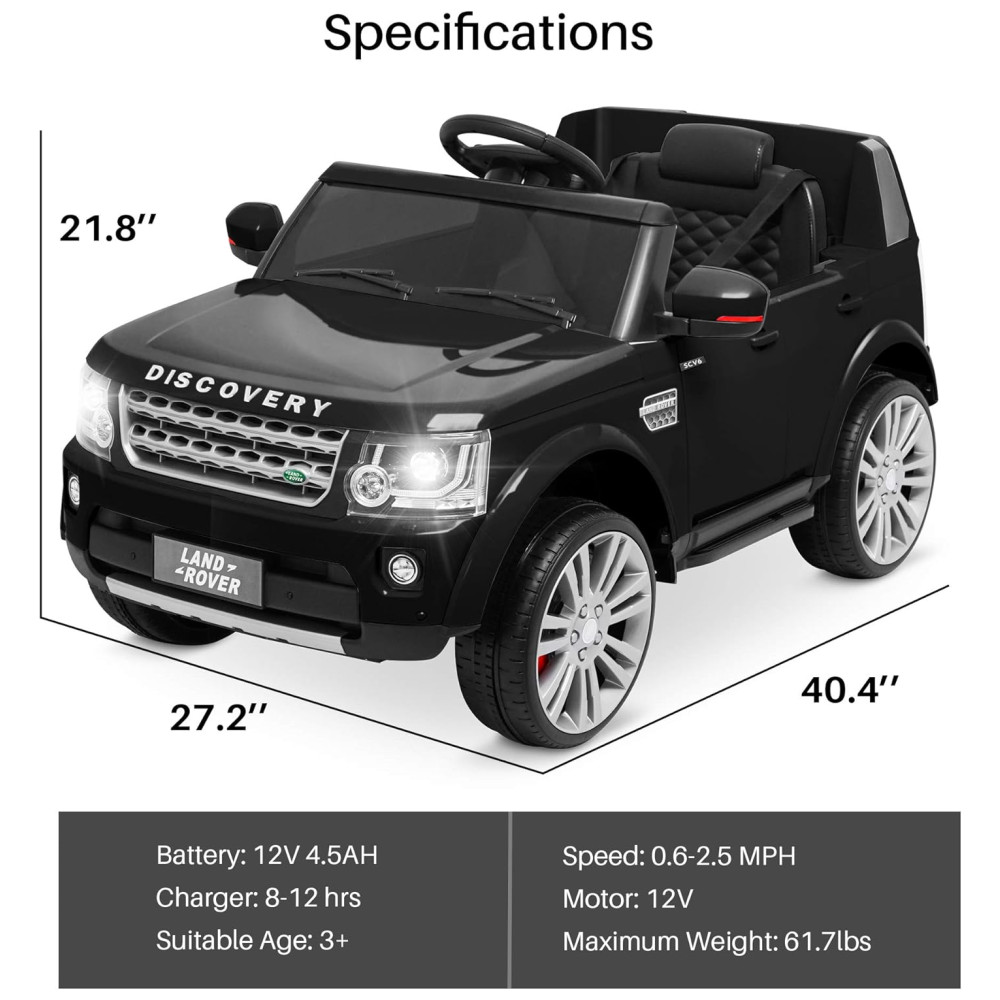 Com um visual moderno e elegante, este passeio licenciado no carro é um presente perfeito para crianças de 3 a 6 anos de idade. Mede 101 X 68 X e pesa 14 kg. Capacidade de carga máxima de 61,7 libras. Tempo de carregamento 8 a 12 horas Tempo de operação 1 2 horas. Faixa de velocidade 1 a 4 km. Certificado ASTM