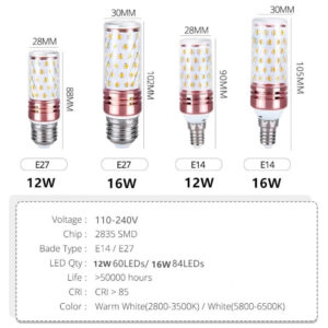 Kit com 10 lâmpadas LED milho bivolt (AC 110V/220V) com bases E14 e E27, potências de 12W, ideais para uso residencial. Essas lâmpadas oferecem três temperaturas de cor: branco quente (3000K), branco neutro (4000K) e branco frio (6000K), proporcionando iluminação versátil para diferentes ambientes. Com design em formato de milho e iluminação em 360°, garantem cobertura uniforme e eficiente. Econômicas, possuem longa vida útil, alta eficiência energética e são perfeitas para lustres, candelabros e outras aplicações decorativas. Produto ideal para quem busca qualidade, durabilidade e iluminação personalizada para a casa.