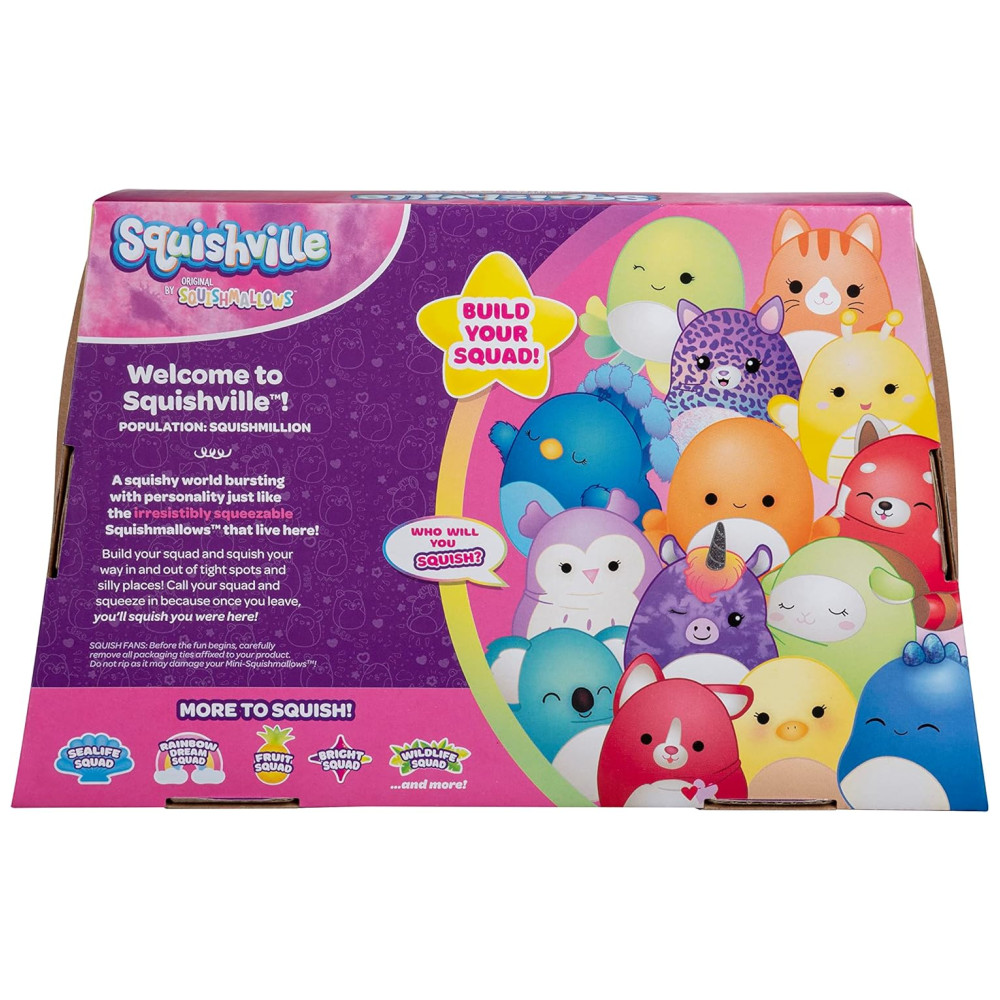 Esses brinquedos fofos são feitos com enchimento supermacio, tornando os os melhores companheiros de brincadeira. O mundo dos brinquedos Squishville é repleto de personalidade, com veículos, conjuntos de jogos e seus personagens de pelúcia favoritos de Squishmallow. São 14 pelúcias MiniSquishmallows que vêm neste multipack, todos feitos com material de alta qualidade e irresistivelmente macios. Esprema se em brinquedos Squishville com pelúcia, conjuntos e veículos MiniSquishmallows.