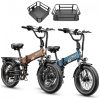 Kit 2 bicicletas elétricas dobráveis Jasion X-Hunter Pro preta e marrom cestos pneus 20×4 motor 750W pico 1800W bateria 48V 15Ah 80 km 110V