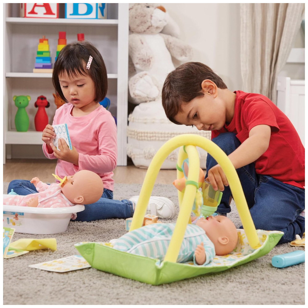 O conjunto de bonecas gêmeas Luke e Lucy, da Melissa Doug Mine, é perfeito para crianças de 18 meses a 5 anos. Com 38 cm de altura, os bonecos têm adoráveis macacões e bonés removíveis coordenados, olhos que abrem e fecham, e podem chupar o dedo ou as chupetas incluídas. Este conjunto é ideal para nutrir, abraçar e desenvolver habilidades sociais e emocionais das crianças.