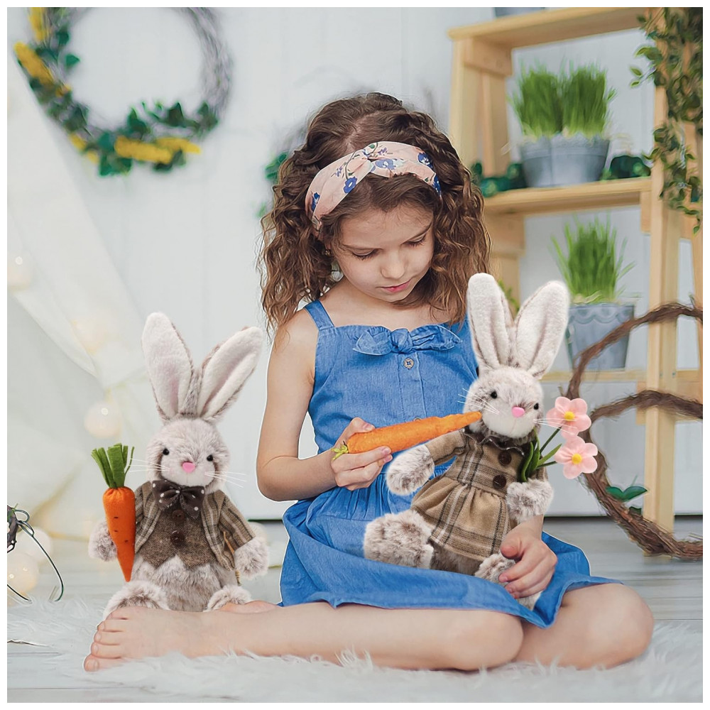 Este casal de coelhos recheados de Páscoa é o presente perfeito para qualquer pessoa durante as temporadas de férias e aniversários, podendo ser usado como o melhor presente de Páscoa para seus filhos, amigos e familiares. Cada um é uma arte única para decorar o festival de Páscoa, casa de primavera, quarto, mesa de jantar ou prateleira.