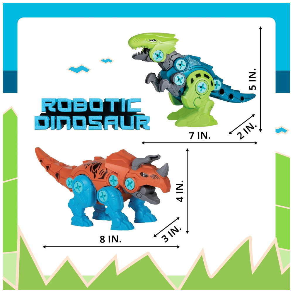 Kit 2 Dinossauros Robôs Triceratops e Velociraptor para Crianças Acima de 3 Anos Emobii