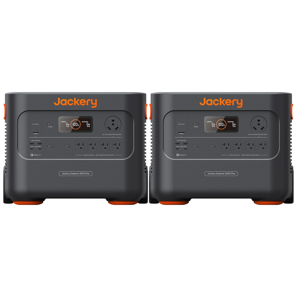 Kit 2 Geradores de Energia Solar Portáteis Explorer 2000 Plus Bateria de 4085Wh 3000W 110V Jakery Preto e Laranja