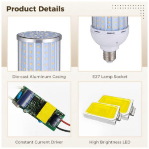 Kit com 2 lâmpadas LED milho base E27, com potência de 60W cada, equivalentes a lâmpadas incandescentes tradicionais de alta potência. Emitem luz branco quente com temperatura de cor de 3000K, ideal para criar ambientes aconchegantes em salas de jantar, quartos e áreas de estar. Possuem fluxo luminoso alto, garantindo iluminação brilhante e uniforme com cobertura de 360 graus. São econômicas e duráveis, com longa vida útil e baixa emissão de calor, proporcionando eficiência energética e conforto visual. O design robusto em alumínio e policarbonato garante boa dissipação de calor, aumentando a vida útil da lâmpada. Fácil de instalar, compatível com soquetes padrão E27, o que torna o uso prático em diversas luminárias residenciais. Produto recomendado para quem busca alta performance, economia e iluminação de qualidade em ambientes internos.