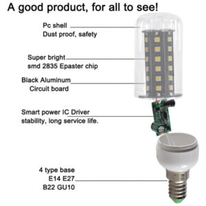 Kit com 2 lâmpadas LED milho YSJX, potência de 8W cada, base E27 compatível com soquetes padrão. Funcionam em faixa de tensão ampla AC 85-265V, ideais para uso residencial e em embarcações (barcos). As lâmpadas emitem luz branco quente (3000K), oferecendo ambiente acolhedor e confortável. Com design eficiente e tecnologia LED SMD, proporcionam iluminação uniforme em 360° e são econômicas, com redução de até 90% no consumo de energia em comparação às lâmpadas incandescentes. Produto de fácil instalação, com longa vida útil, baixa geração de calor e sem cintilação, garantindo conforto visual e segurança no uso. Perfeito para iluminar ambientes internos, lâmpadas decorativas tipo vela e outras aplicações domésticas e navaleiras.