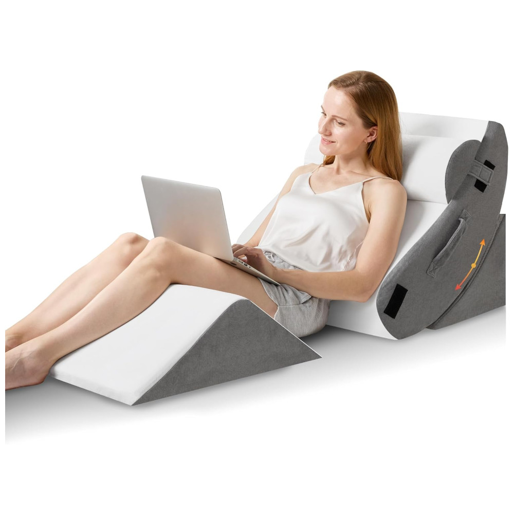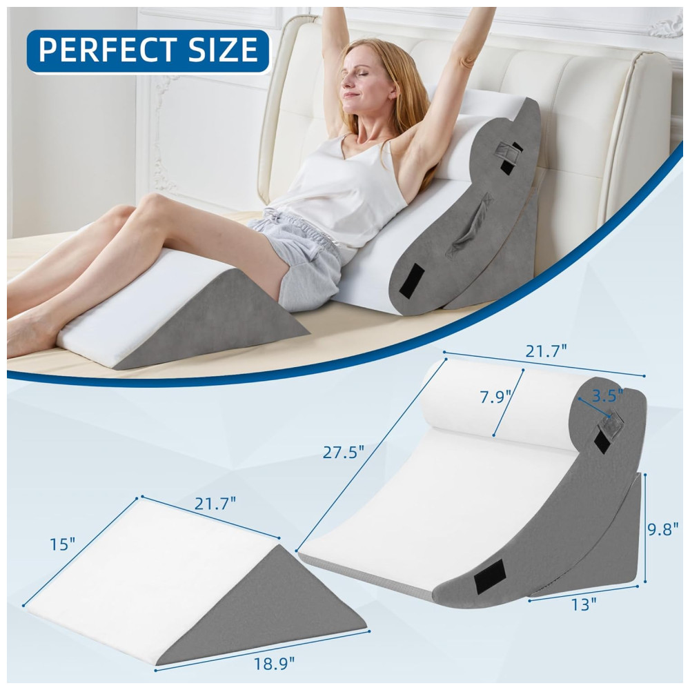 O conjunto de travesseiros em cunha HABUTWAY é ideal para quem busca suporte e conforto para as costas, alívio da dor ou recuperação de cirurgia. Composto por quatro partes componíveis, o sistema é ajustável para imitar o ângulo da sua poltrona reclinável na parte superior da cama, permitindo que você tenha um sono mais tranquilo. A espuma de memória de alta densidade e bom rebote se ajusta melhor às curvas do seu corpo, oferecendo suporte total.