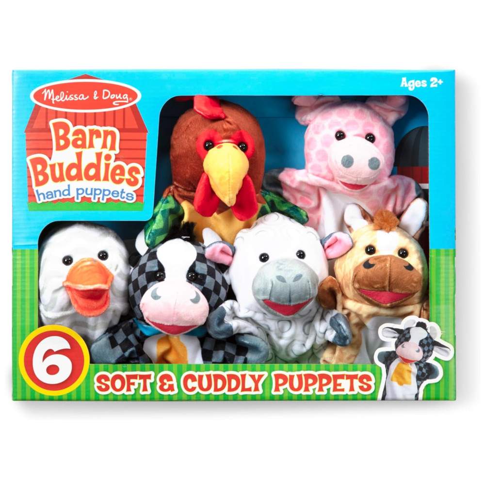 Este conjunto de fantoches de mão Melissa Doug Barn Buddies é perfeito para crianças a partir de dois anos e adultos. O conjunto contém seis fantoches de mão macios, incluindo uma vaca, uma ovelha, um cavalo, um pato, uma galinha e um porco. Os fantoches são feitos com material de pelúcia macio e lavável, tornando os fáceis de limpar.