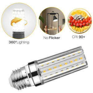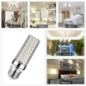 Este kit contém 6 lâmpadas LED de milho, base média E27, com potência de 20W cada, equivalentes a lâmpadas incandescentes tradicionais de 150-200W, garantindo alta eficiência energética e economia significativa no consumo. Com temperatura de cor branco quente (3000K), proporcionam iluminação acolhedora e confortável para ambientes internos como residências, lojas, restaurantes e ambientes comerciais. Cada lâmpada possui 110 LEDs SMD 5730 para emissão de luz uniforme com ângulo de 360°, garantindo ampla cobertura luminosa. As lâmpadas são compatíveis com voltagem fixa de 220V e fabricadas com materiais que oferecem durabilidade e eficiente dissipação térmica, prolongando a vida útil do produto. Fácil instalação em soquetes padrão E27. Indicadas para uso em lustres, lâmpadas tipo vela e iluminação de destaque em interiores.