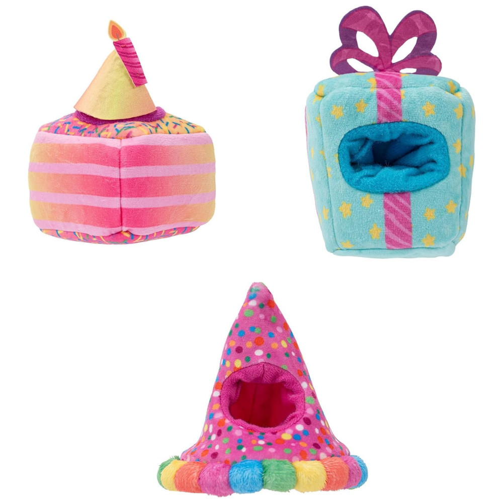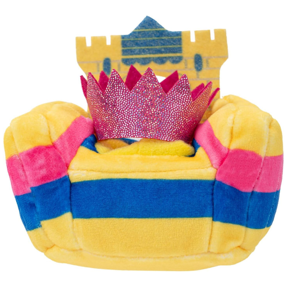 Além disso, você poderá se divertir com três trajes adoráveis, cada um com bolo, presente e chapéu de festa. E para gastar energia, há um castelo inflável completo com acessório de segurança.