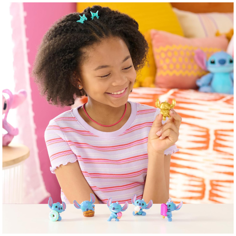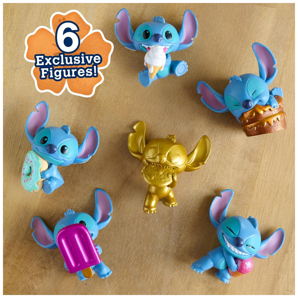 O conjunto de colecionador Disney Feed Me Stitch é perfeito para quem busca comida reconfortante e doces. Composto por 6 estatuetas estilizadas de Stitch, cada uma com cerca de 5cm de altura, este conjunto apresenta Stitch comendo seus lanches favoritos, incluindo um cupcake, bolo de chocolate, donut, picolé e casquinha de sorvete, todos com acabamentos iridescentes e brilhantes.