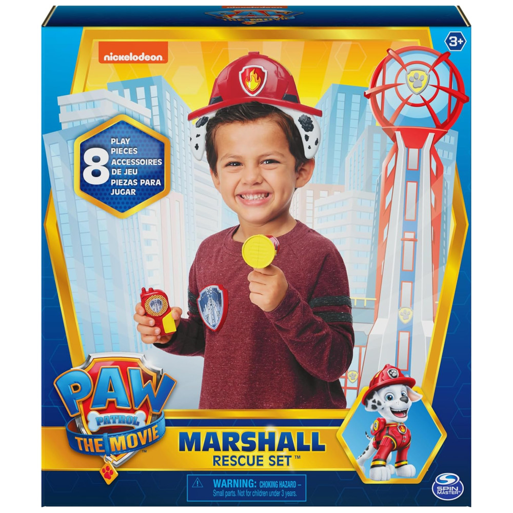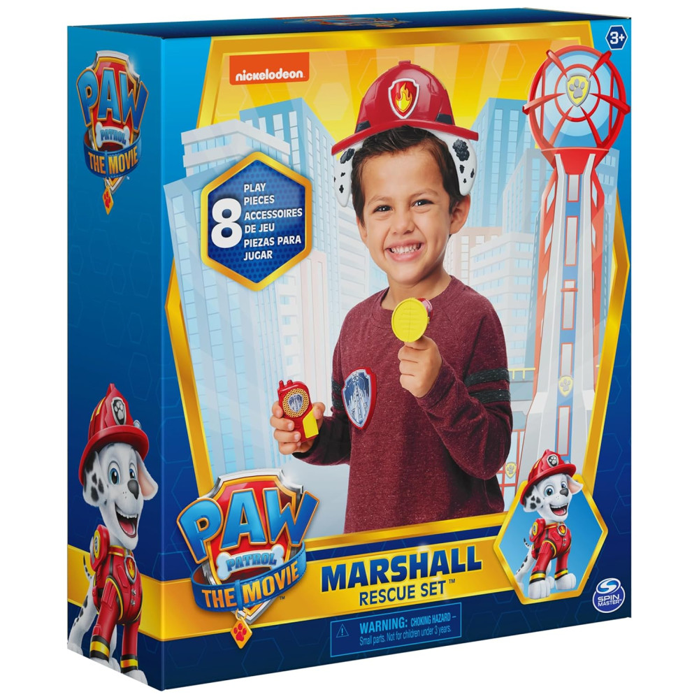 Vista se como Marshall, seu filhote favorito da Patrulha Canina, com o Marshall Rescue Set de 8 peças Com este conjunto, as crianças podem recriar cenas emocionantes do filme PAW Patrol The Movie e criar suas próprias aventuras inspiradas em resgates. O conjunto inclui um distintivo da Patrulha Canina, capacete, mapa da Adventure City, lanterna, megafone, extintor de incêndio e muito mais para horas de diversão.