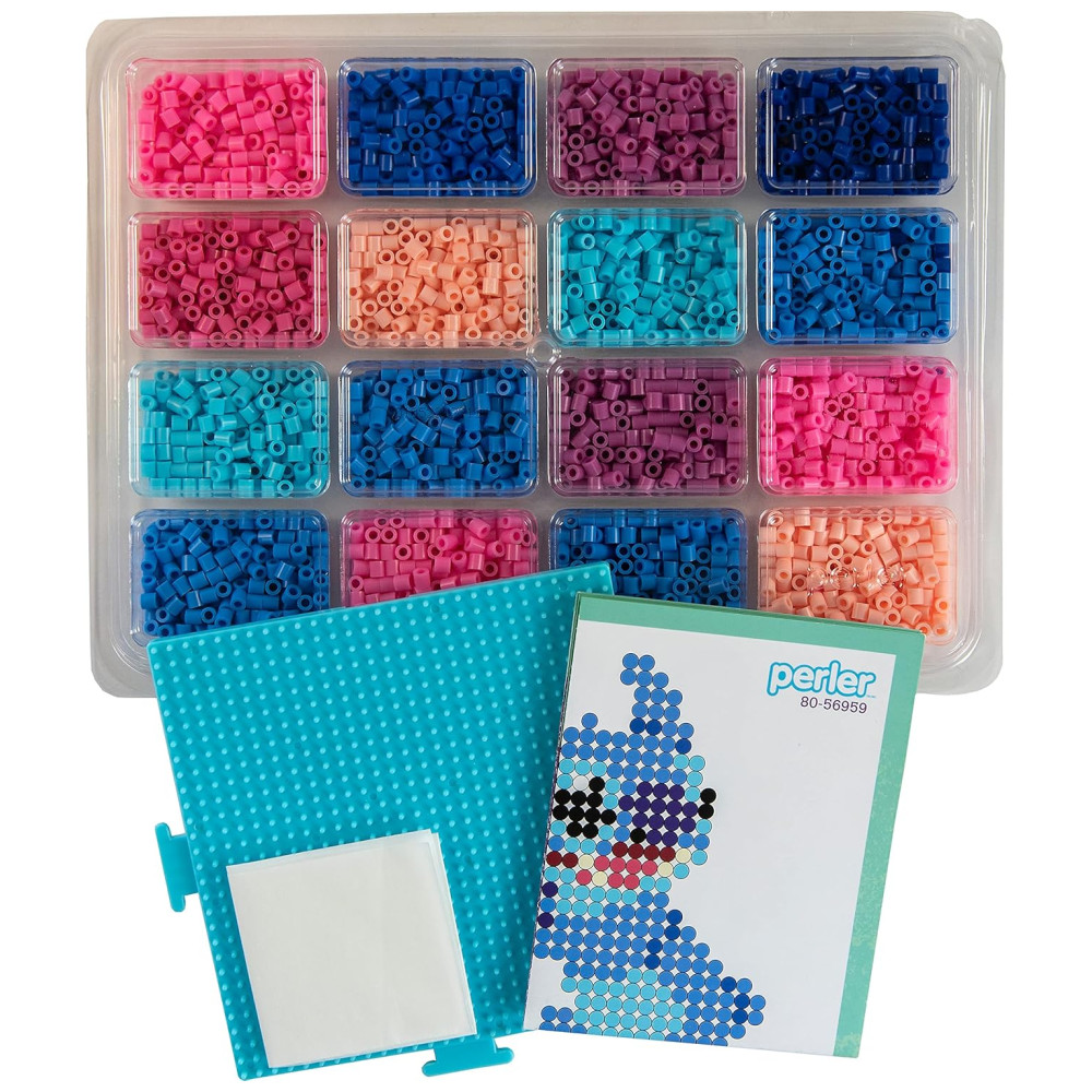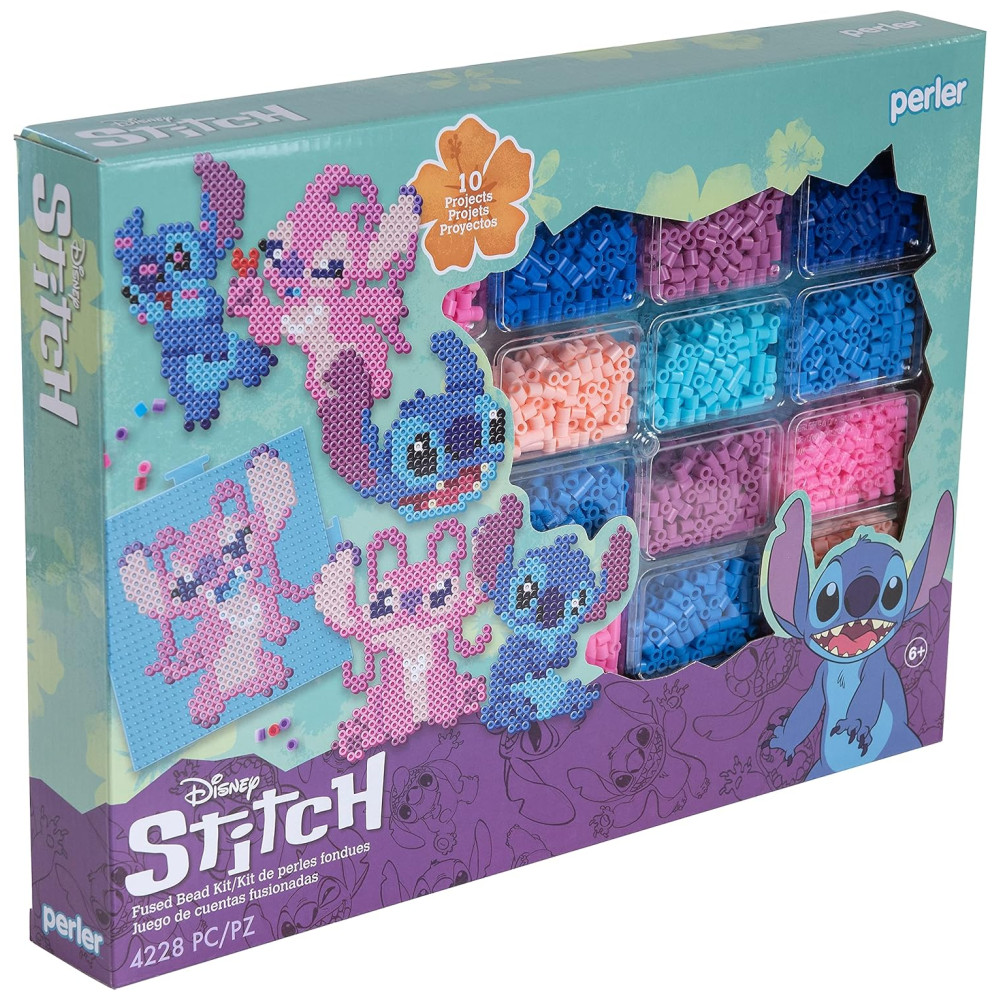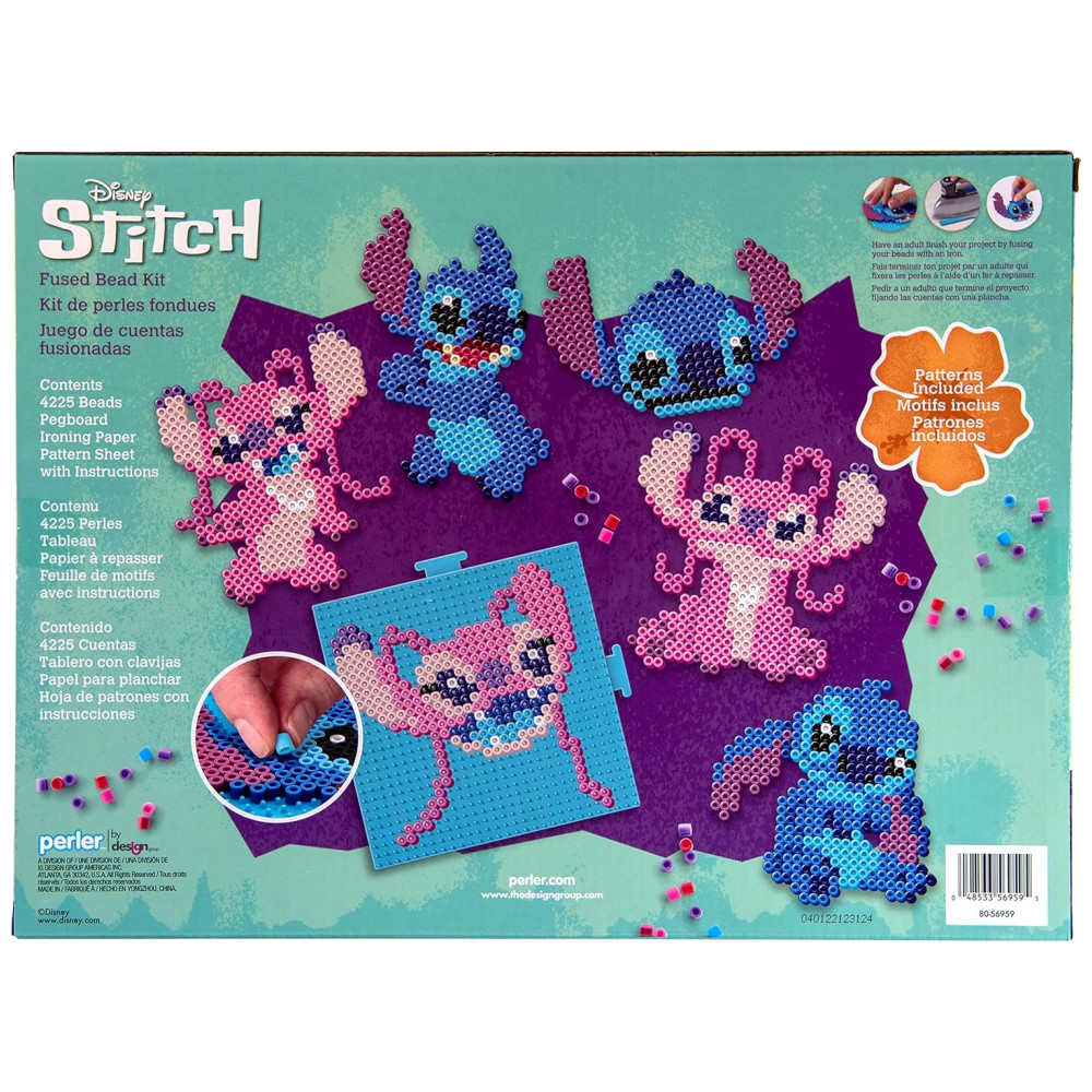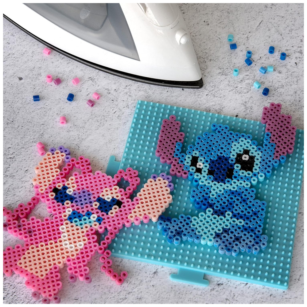 Crie os personagens Stitch e Angel da Disney em várias poses e cenários com este kit de artesanato de contas fusíveis da Perler. Com 4225 contas, quadrado grande interligado, folha de padrão com instruções e papel para passar, o kit vem com tudo que você precisa para fazer os 10 projetos incluídos no conjunto.