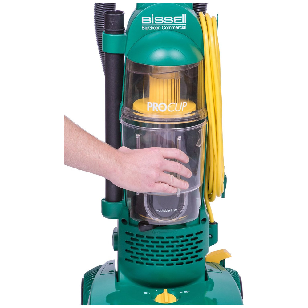 Conheça o Aspirador de Pó Vertical com Copo de Sujeira Bissell Comercial Pro (Verde) e o Aspirador de Pó Leve, Vertical, Industrial, com Bolsa BISSELL BigGreen Comercial PowerForce.