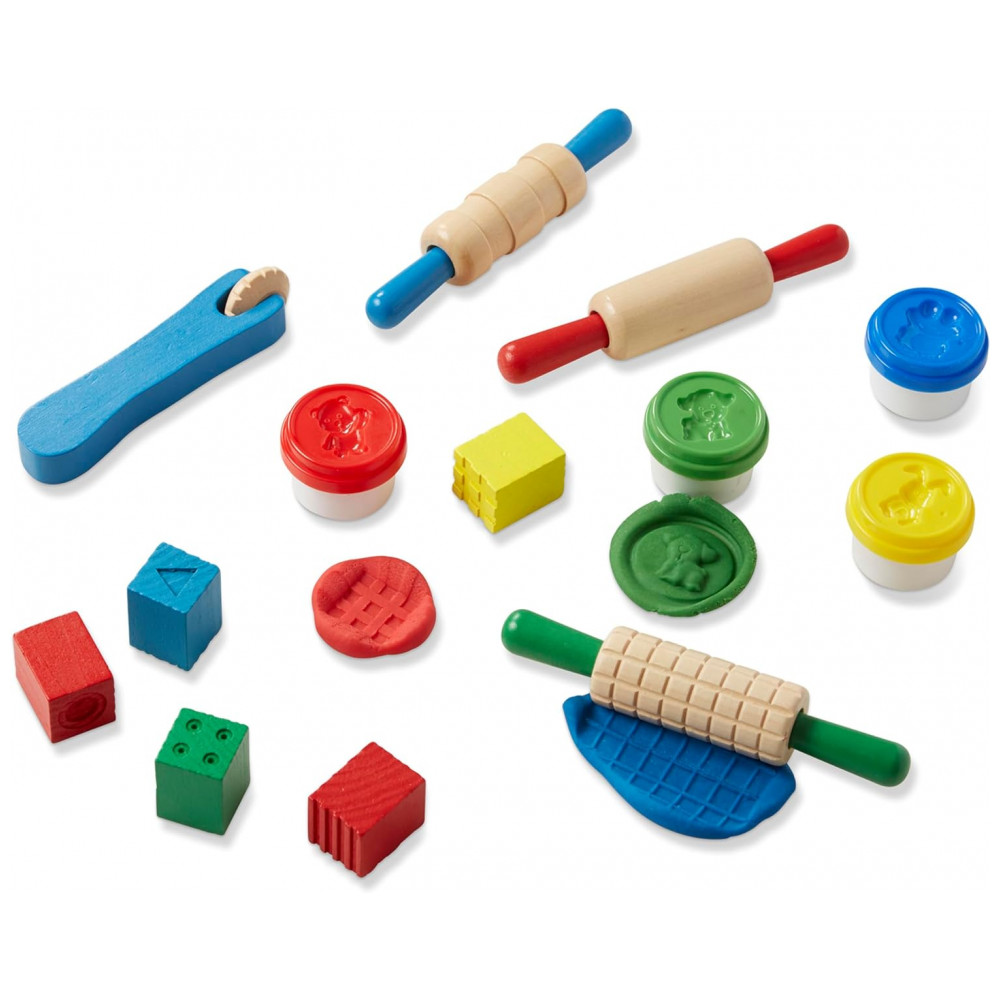 Este kit de massa de modelar da Melissa Doug vem com quatro potes coloridos com tampas de moldagem, uma prensa de roda estampada, cinco cubos de estampagem de madeira easygrip e três rolos de massa com padrões exclusivos. A coleção é composta por quatro cores vibrantes vermelho, amarelo, azul e verde, e cada tampa possui adoráveis moldes de animais. É ótimo para desenvolver habilidades motoras finas, força dos dedos, reconhecimento de cores, reconhecimento de formas e expressão criativa.