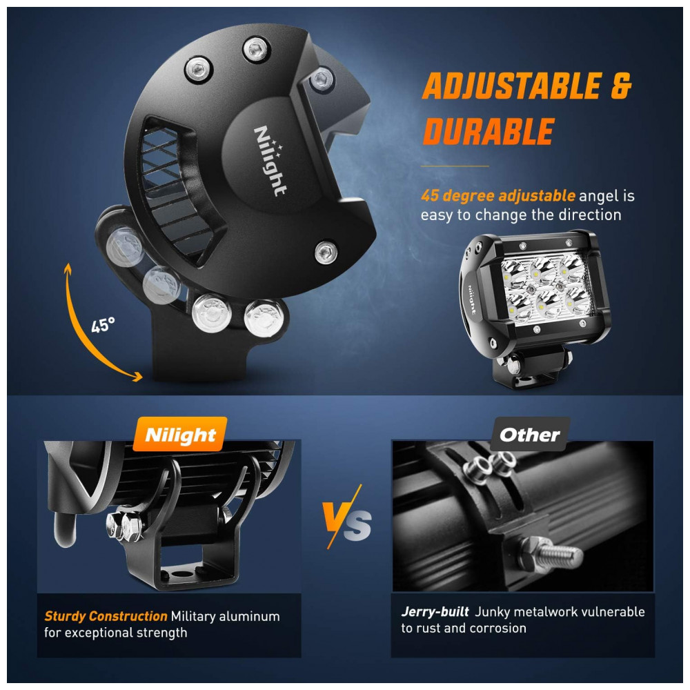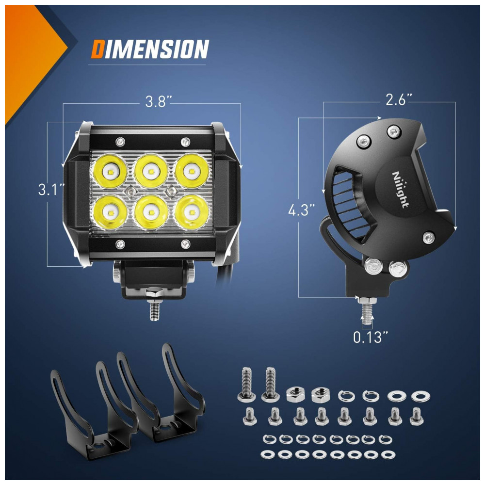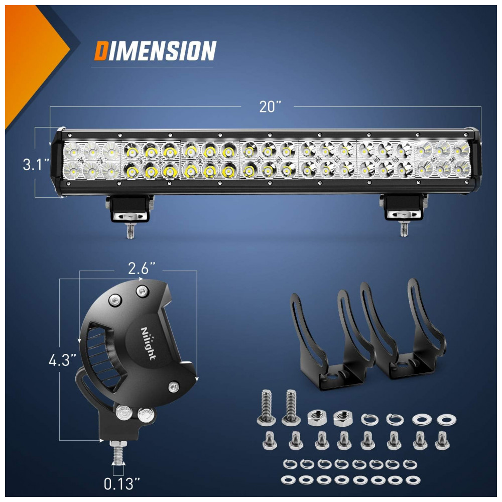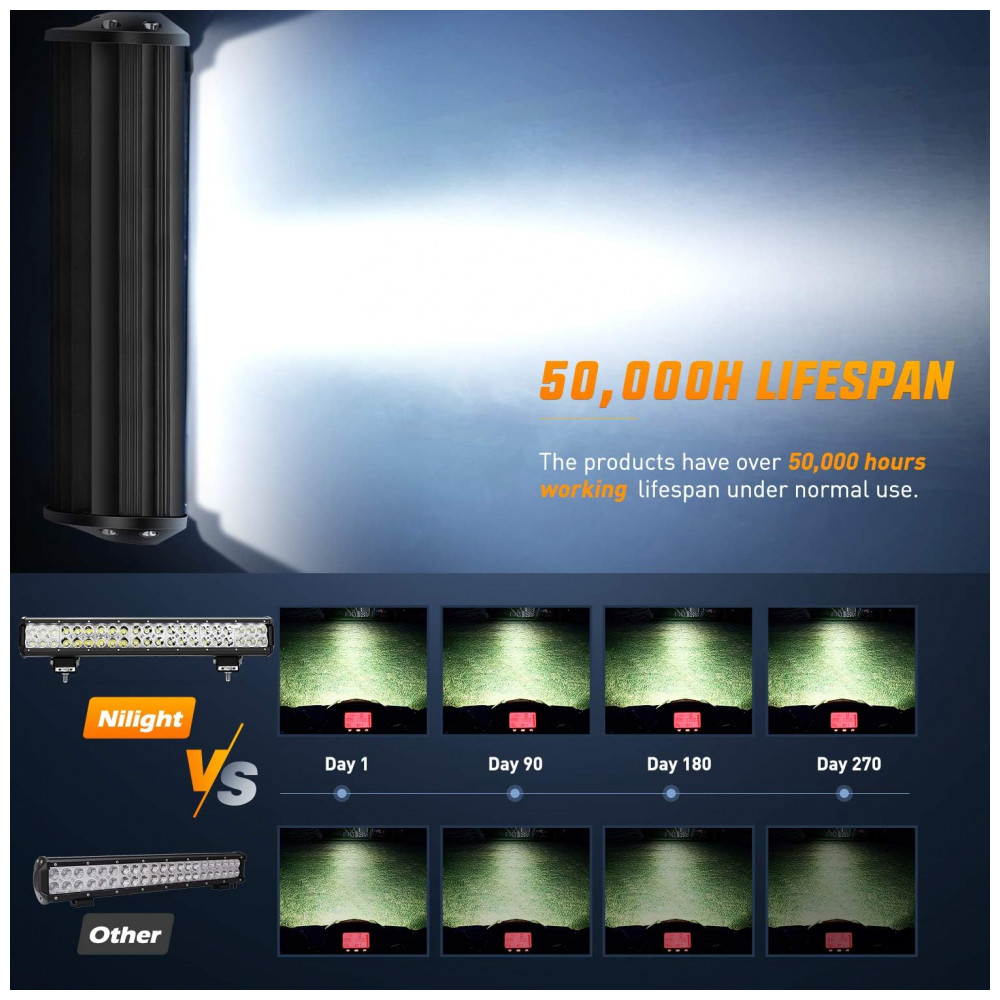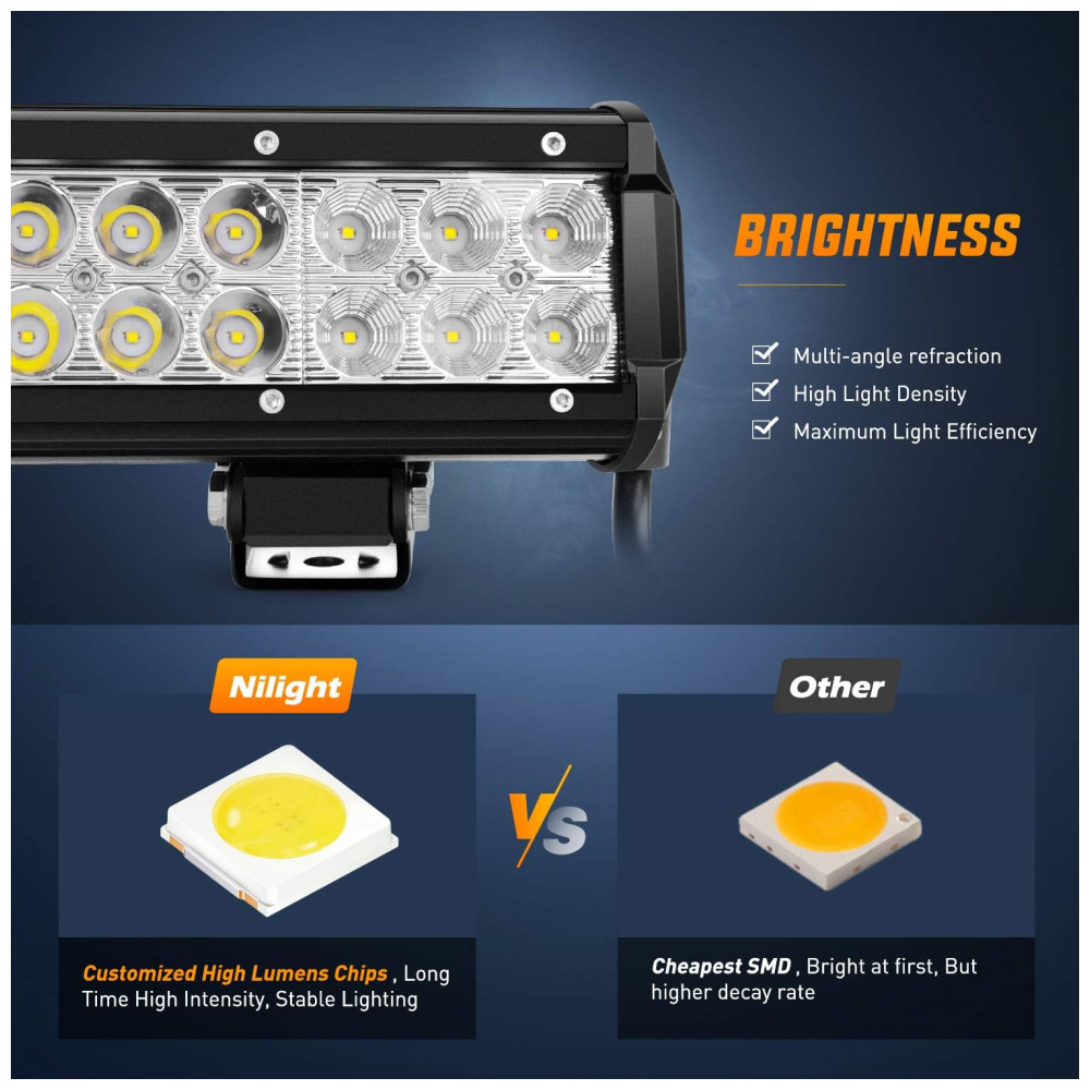 Kit Barra LED e Farol de Milha LED Off Road com Cabos 18W 126W 12V Nilight ZH002 Preto
