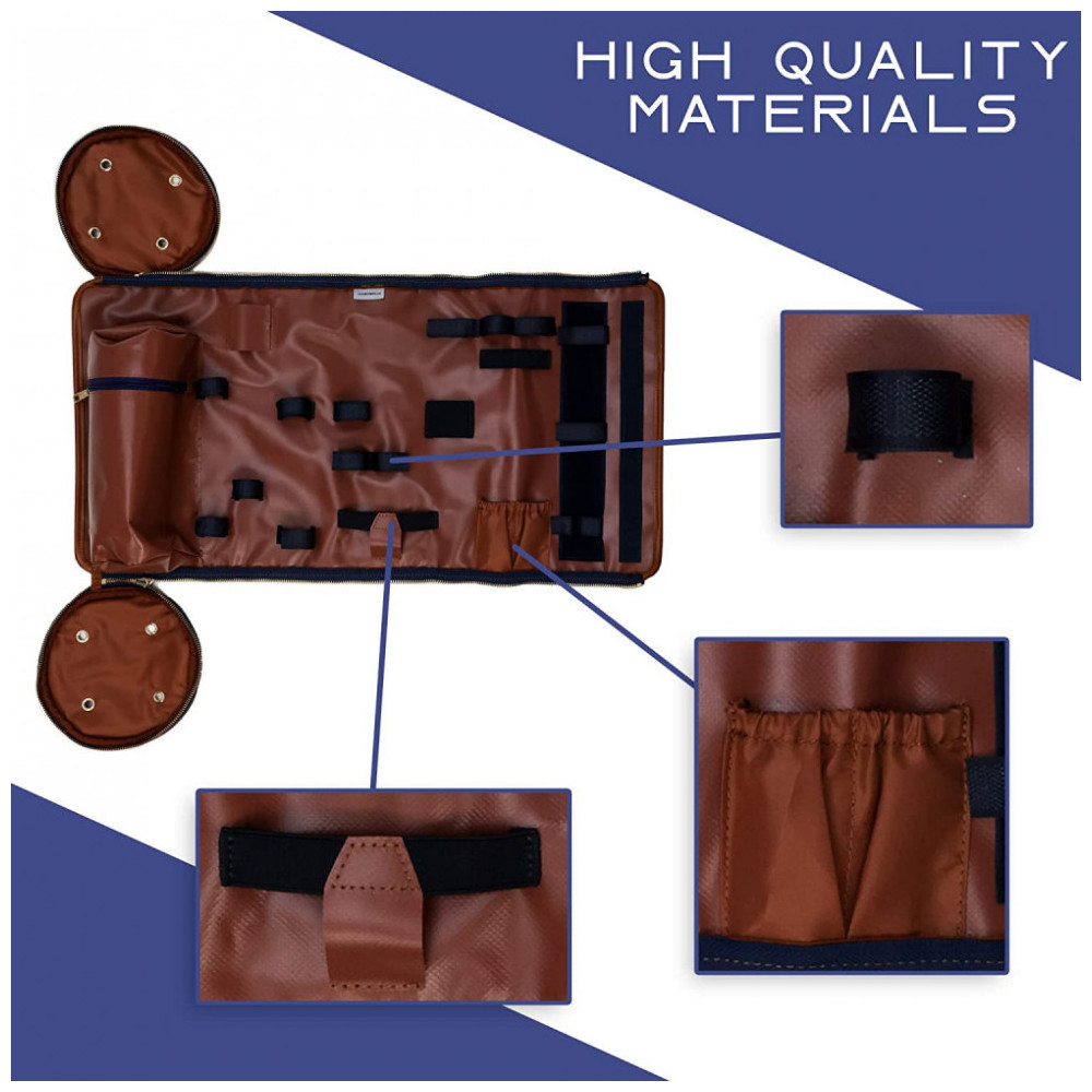 Configuração sem complicações Com um zíper durável e uma variedade de compartimentos de velcro, você pode zenar e configurar facilmente sua bolsa de ferramentas de coquetel com facilidade e precisão. Simplesmente lave seus acessórios de rolo de bn quando terminar e leve para o próximo evento