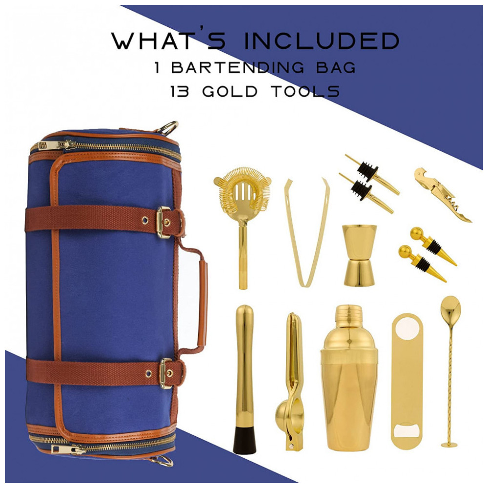 Luxury Bartender Bag Imagine se recebendo amigos em sua casa e tendo todas as ferramentas do comércio de bartender ao seu alcance. Este kit de bn de viagem vem completo com tudo que você precisa para ser um bn profissional.