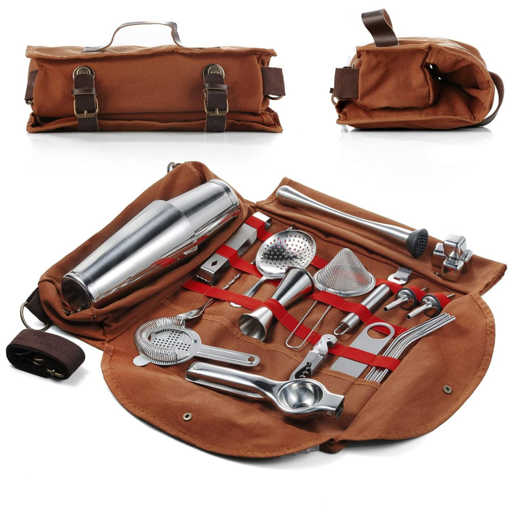ÓTIMO PRESENTE ACIMA DE 100 VALOR Absolutamente o melhor valor disponível, kit de coquetel de 24 peças e elegante bolsa de lona, ambos embalados juntos dentro de uma caixa de presente elegante. É um presente impressionante para um amante de coquetéis em aniversário, casamento, Natal, dia dos pais ou qualquer outra ocasião.