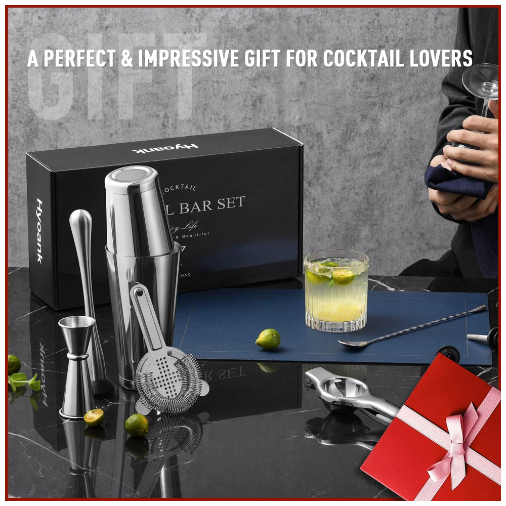 RICO E DURÁVEL Hyoank está aqui para oferecer aos shakers bartenders e entusiastas um fluxo constante de kit de bartender de alta qualidade. eles são projetados para serem práticos e elegantes, mas duráveis o suficiente para o uso diário. então tom de gelo de aço inoxidável e canudos são fornecidos além das ferramentas de barra comuns