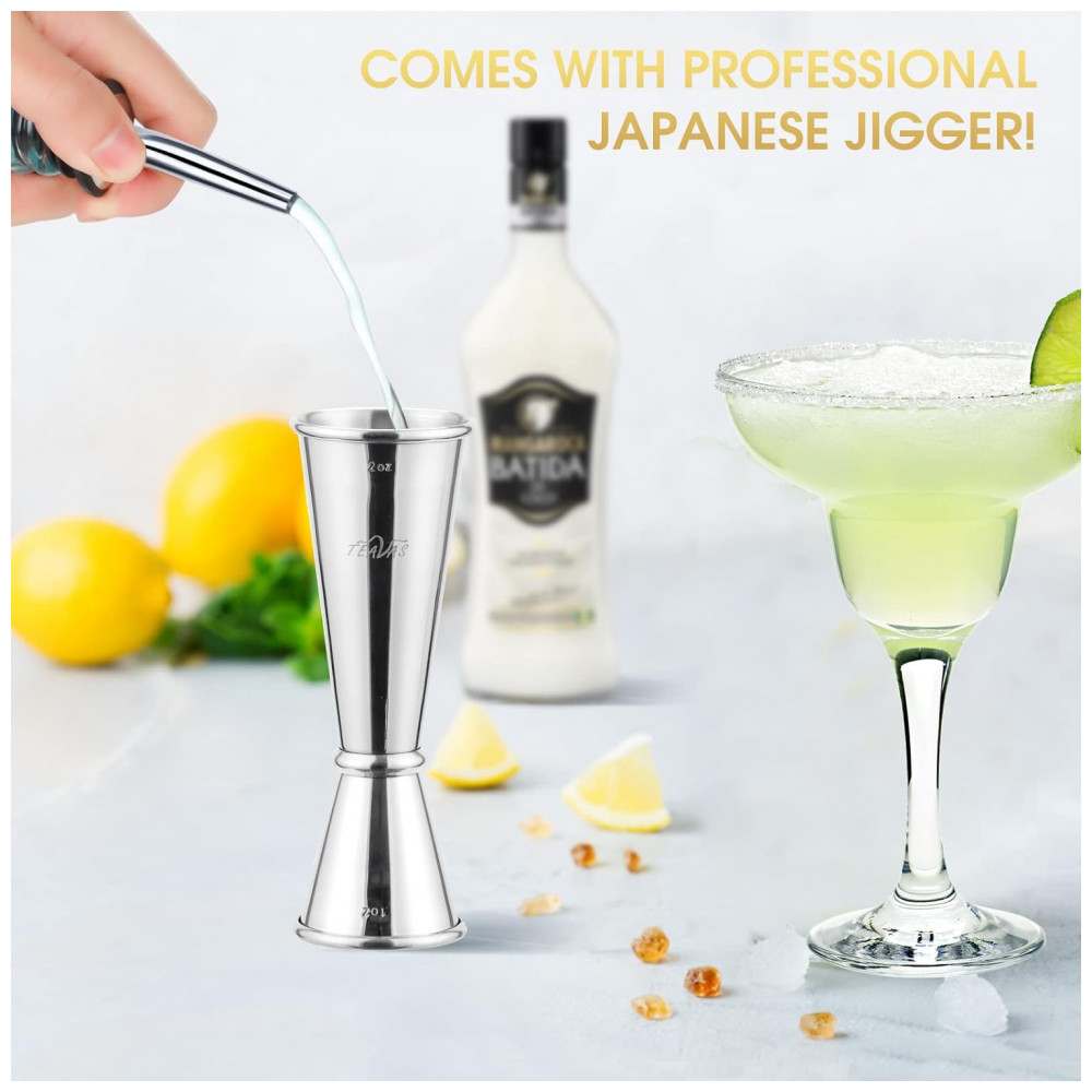 O kit de bartender O bar sets cocktail oferece uma solução perfeita para todas as suas necessidades de utensílios de bar. Possui 25 peças, incluindo uma coqueteleira, permitindo que você atenda os clientes como um profissional. Além disso, o conjunto acompanha suporte de bambu para facilitar a organização e zenamento dos utensílios do bar. Ele vem com um menu de receitas exclusivo gratuito para fazer coquetéis incríveis.