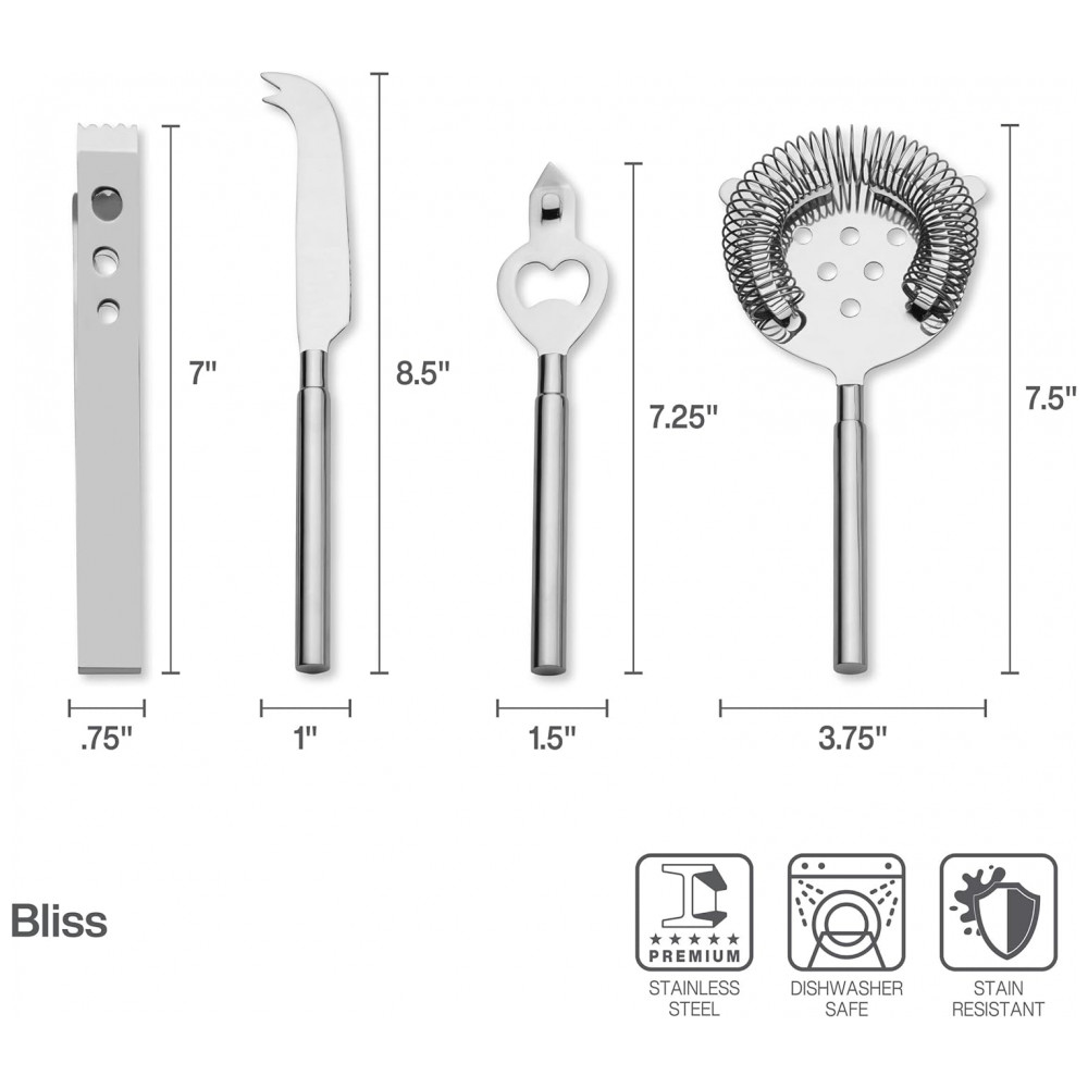 FERRAMENTAS ESSENCIAIS DE BAR sempre tenha todas as ferramentas necessárias para preparar uma variedade de deliciosos coquetéis para começar a festa.