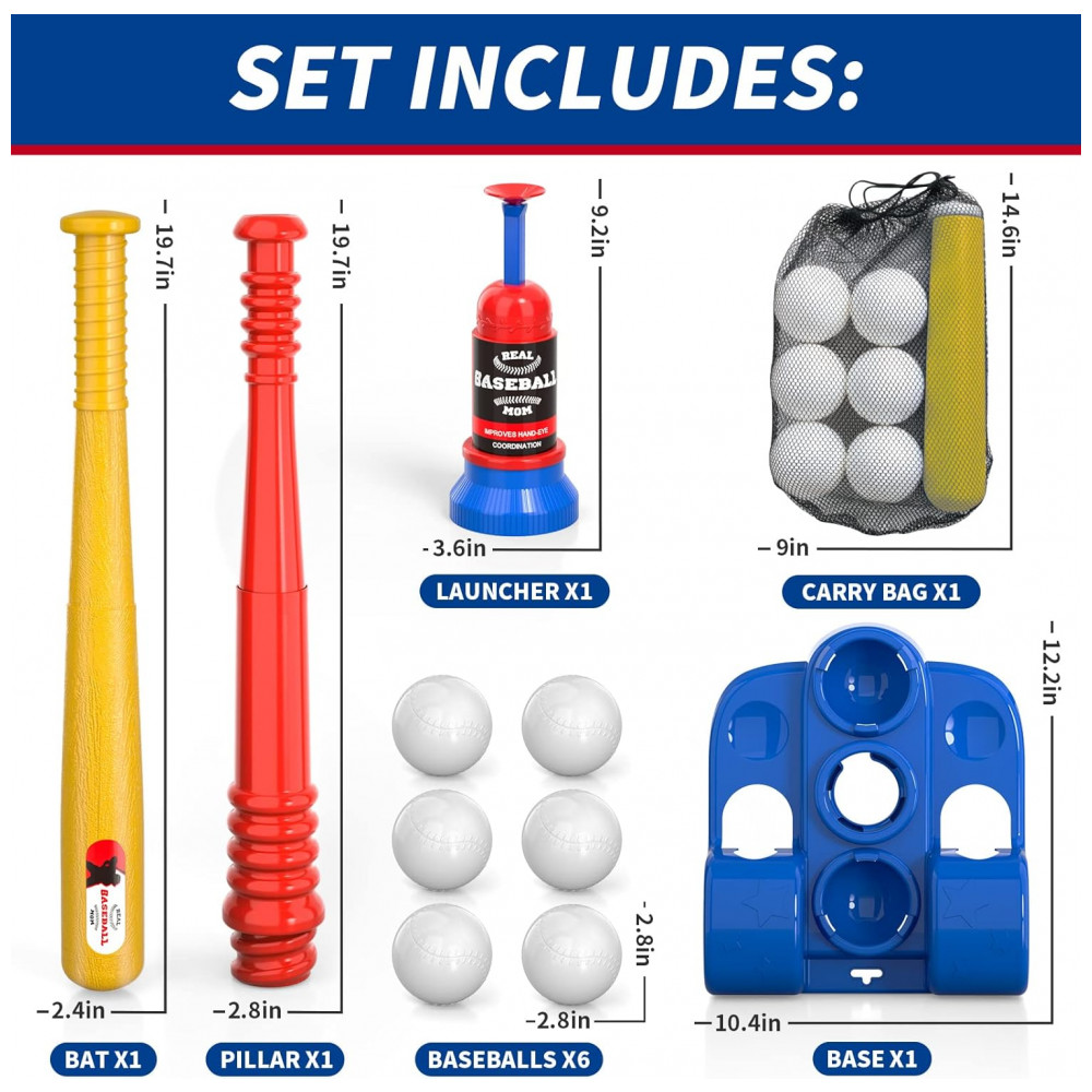 Esses brinquedos oferecem uma experiência autêntica de beisebol, pois incluem um tee de rebatidas e um lançador de bola automático. São fáceis de utilizar e proporcionam às crianças a oportunidade de praticar habilidades como rebater, lançar e acertar a bola. Eles são perfeitos para organizar jogos de beisebol no quintal, ndo a imaginação e proporcionando diversão para as crianças. Além disso, são ótimas opções de presente para meninos de 3 a 6 anos interessados em atividades ao ar livre.