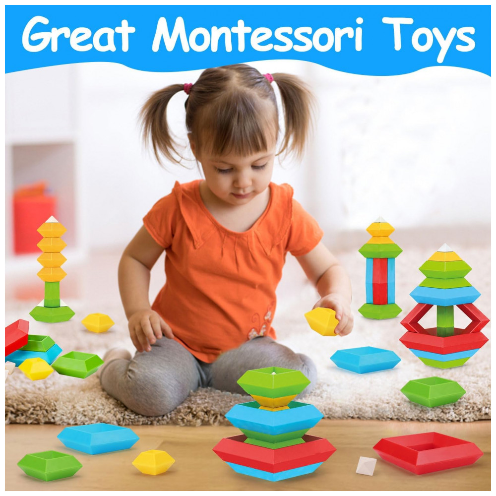 Kit Blocos de Empilhar STEM – Montessori Tsomtto 30 Peças Coloridas para Crianças a Partir de 3 Anos