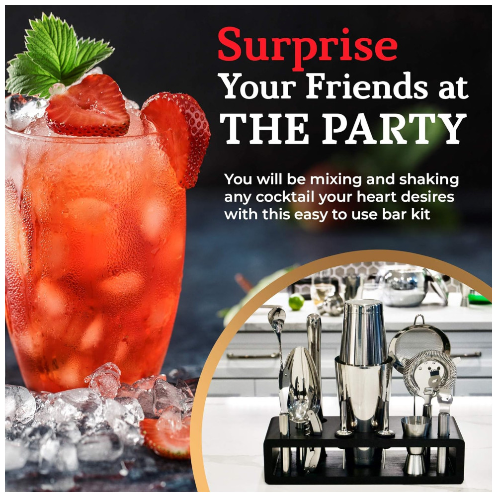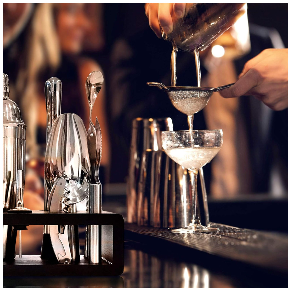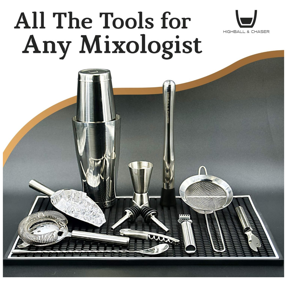 QUALIDADE SUPERIOR Todas as ferramentas de barra são feitas com aço inoxidável polido 304 ou 403 polido anti ferrugem. Todas as ferramentas são adequadas para alimentos e lava louças. Vem com uma bela coqueteleira Boston à prova de vazamentos. Todas as soldas são fortes e bonitas