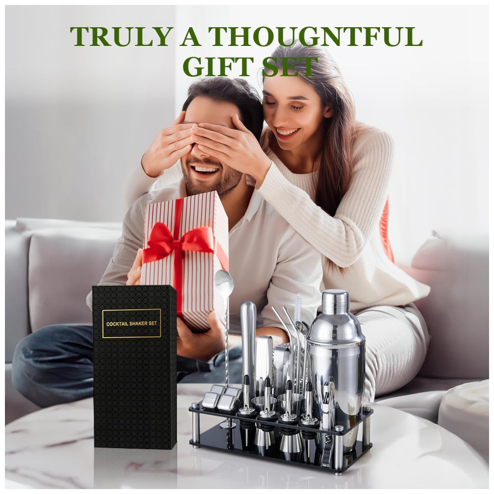 Ótimo para casa ou festa É uma boa escolha para os amantes de coquetéis, fornece a você a melhor maneira de entreter seus convidados na festa. Ele vem com nossos cartões de receitas exclusivos para uma experiência de mistura maravilhosa, independentemente de você já ter feito uma experiência de coquetel Nosso conjunto de ferramentas para bar de 23 peças pode torná lo tão profissional ao misturar bebidas em sua festa ou em casa. Além disso, o kit bar é feito de forma elegante, o que significa que você pode dá lo como um presente perfeito para sua família e amigos quando quiser