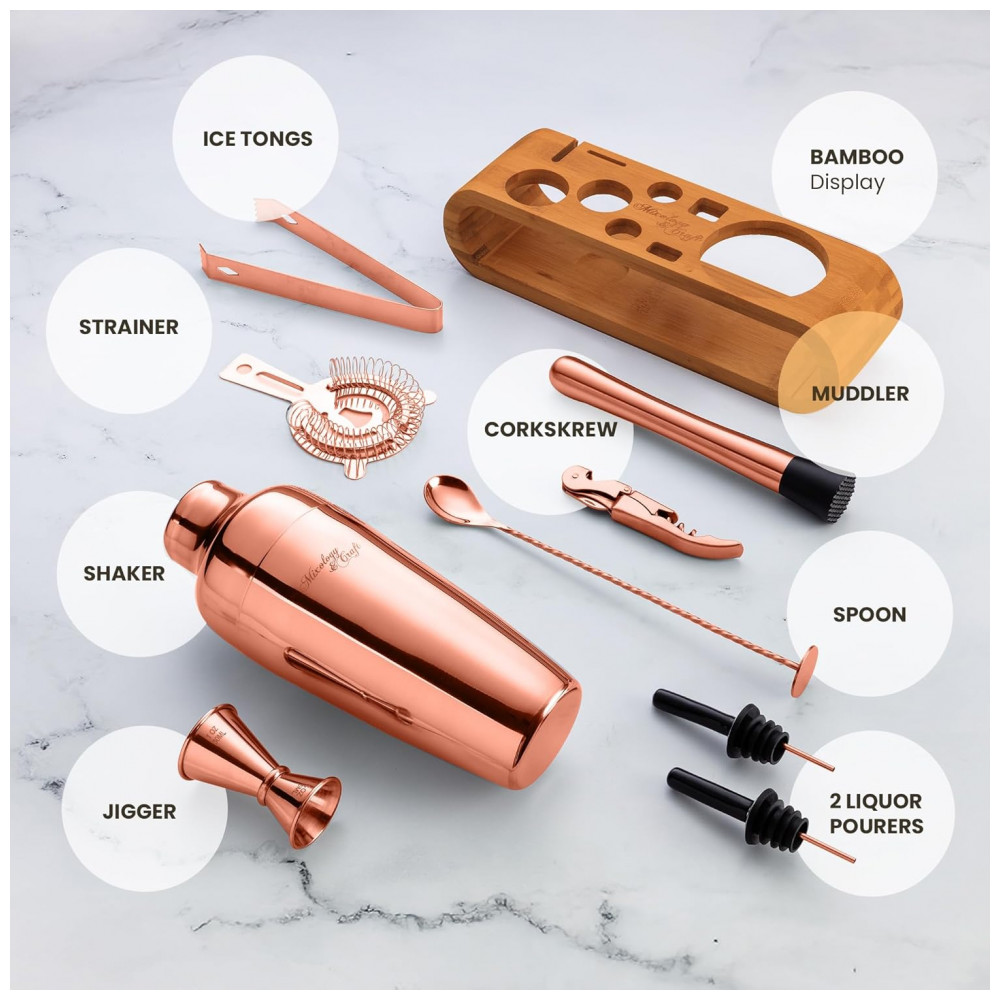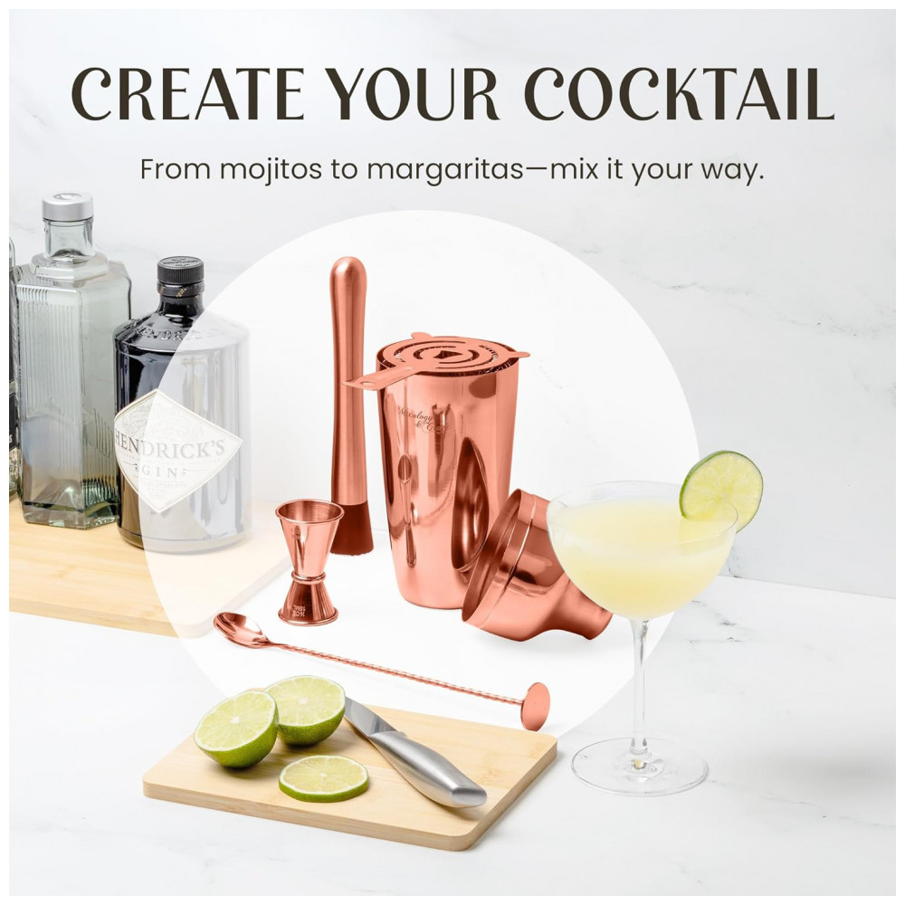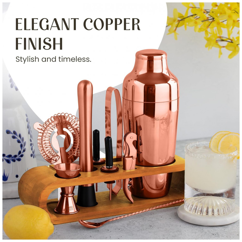 Kit Bn Profissional Mixology Craft 10 Peças em Alumínio com Suporte de Bambu Cor Cobre