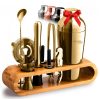 Kit Bn Profissional Mixology Craft 15 Peças em Aço Inoxidável com Suporte de Madeira Cor Prata