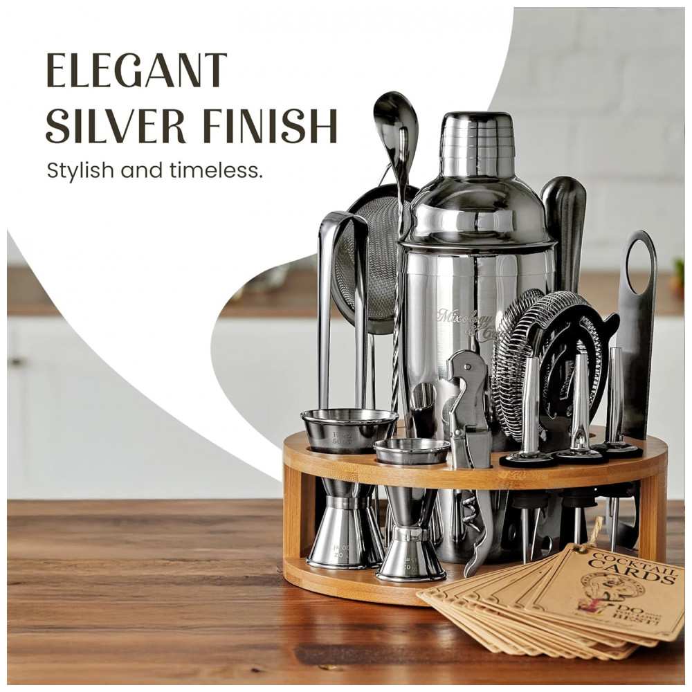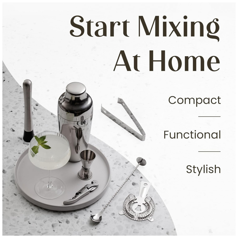 Mixology Cocktail Shaker Set abrange todas as ferramentas básicas para preparar coquetéis para bartending doméstico ou profissional. É uma adição de valor, e você estará misturando bebidas tão fácil quanto 1 2 3