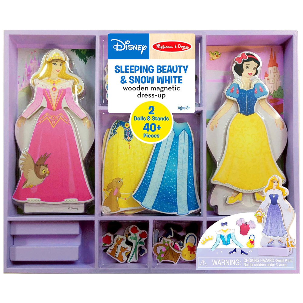 Kit Bonecas Magnéticas de Madeira Bela Adormecida e Branca de Neve com Mais de 40 Peças para Crianças Acima de 3 Anos Melissa & Doug