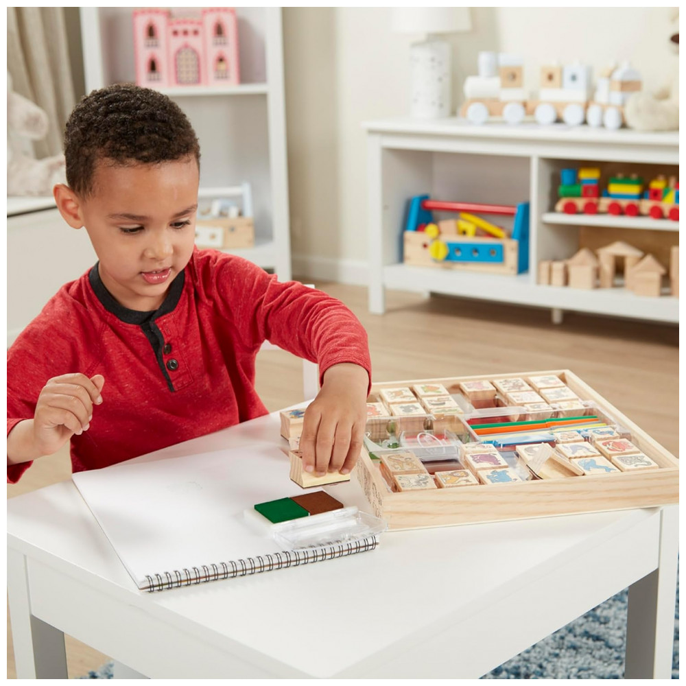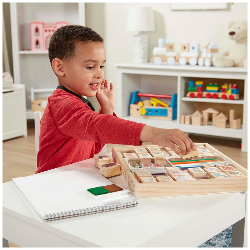 O conjunto de carimbos de madeira Deluxe é um presente encantador e educativo para crianças a partir de 4 anos. Adicione o Melissa Doug Rainbow Stamp Pad para completar a experiência de jogo criativo e dar às crianças outra opção envolvente para diversão sem tela. Por mais de 30 anos, Melissa Doug criou produtos lindamente projetados que estimulam a imaginação e a criatividade, que a NBC News chamou de padrão ouro nas brincadeiras da primeira infância.