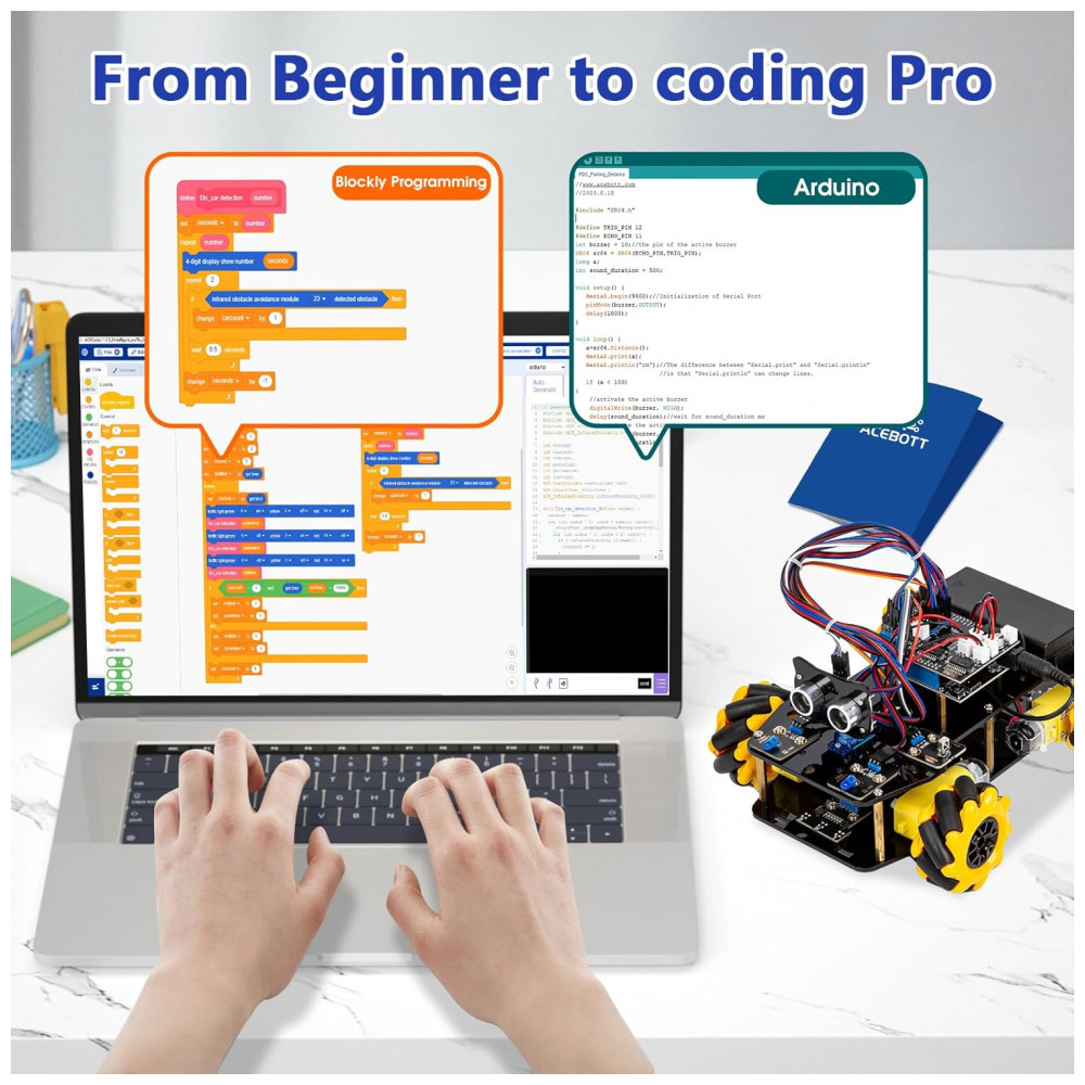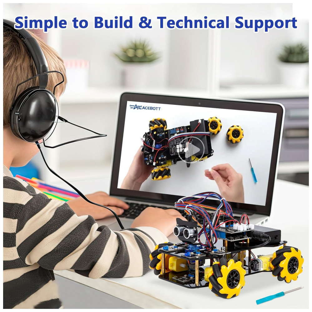 Kit Carro Robô Inteligente ACEBOTT com Controle ESP32 Rodas Mecanum e Expansão STEM para Crianças e Jovens