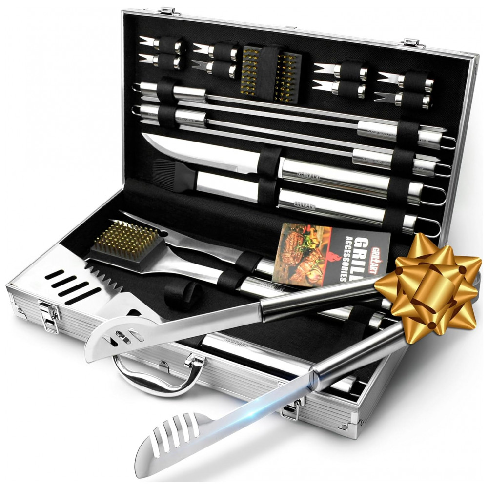 Kit Churrasco na Grelha 19 Peças de Aço Inoxidável com Estojo de zenamento GRILLART Prateado