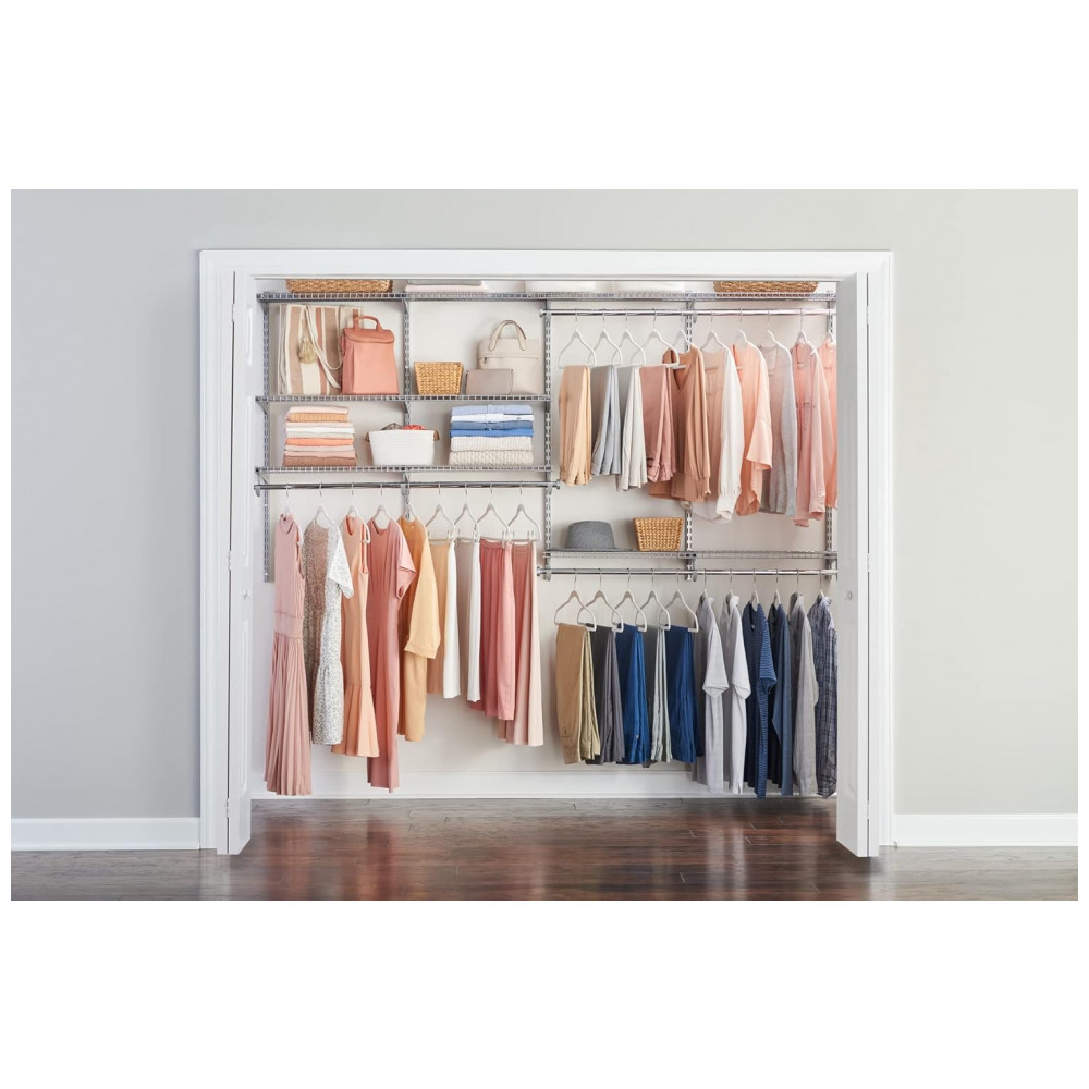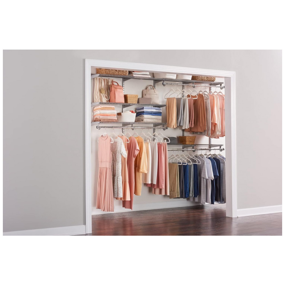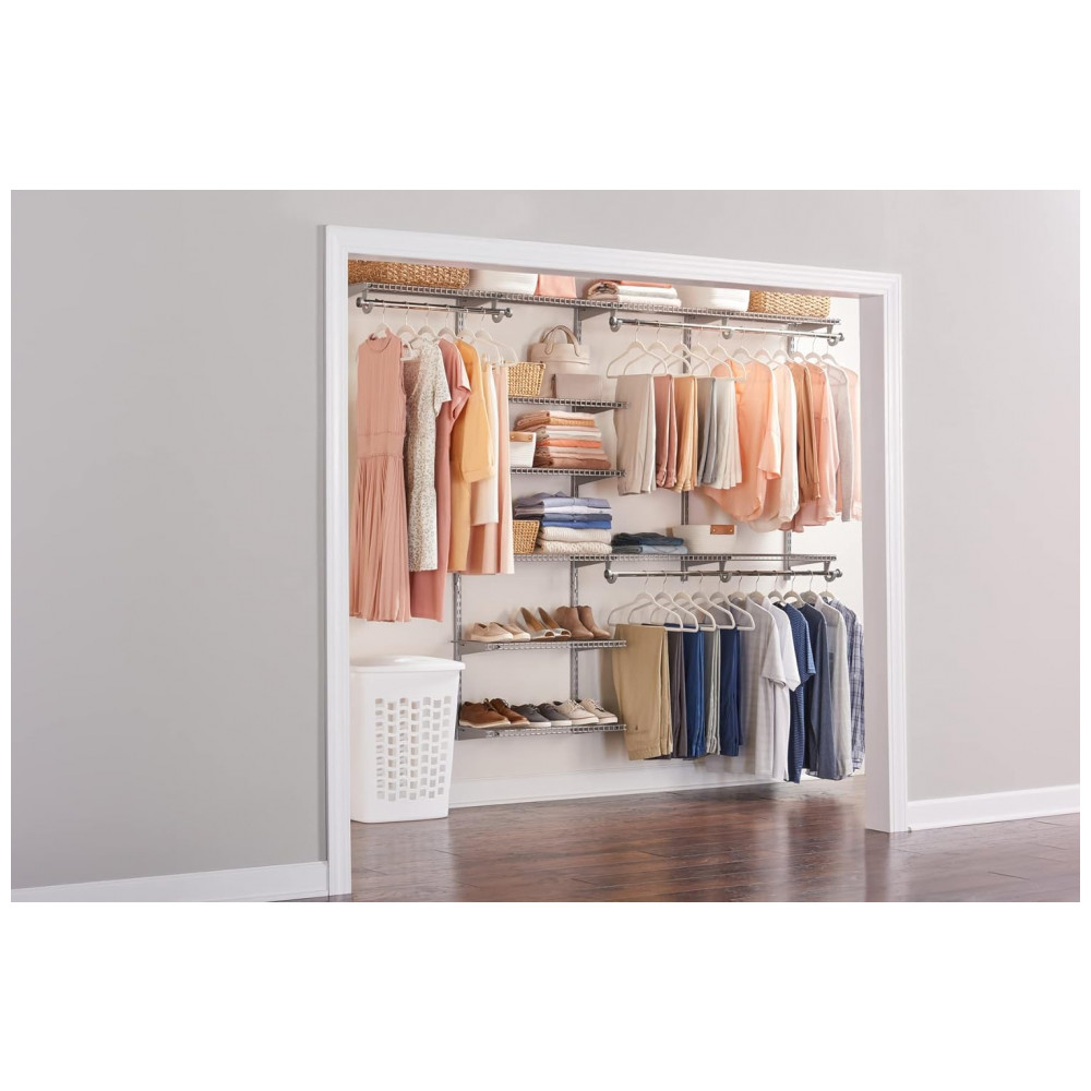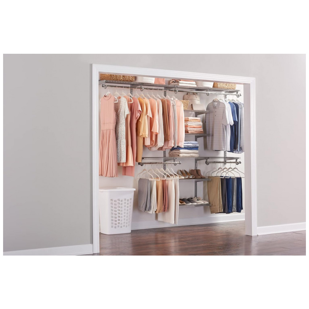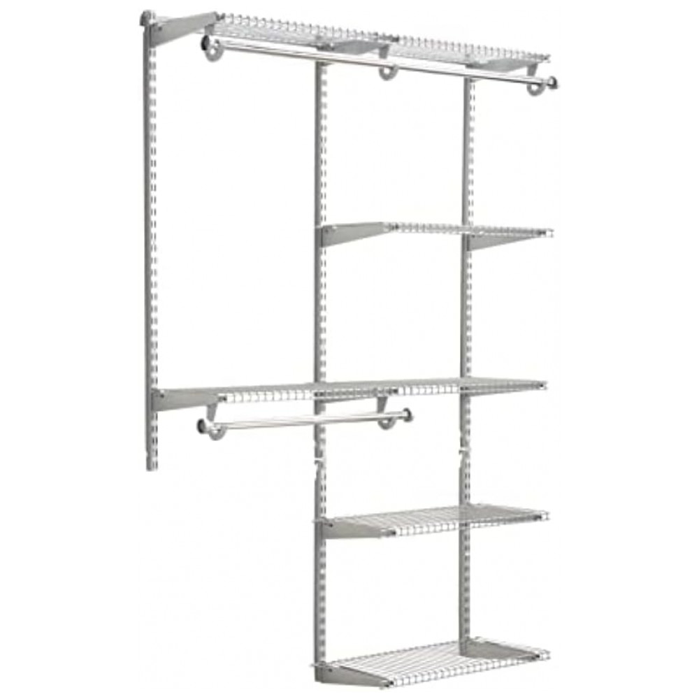 Kit Closet Aramado 1 a 4 Metros com Prateleiras Expansíveis e Hastes Telescópicas Personalizável Rubbermaid em Titânio