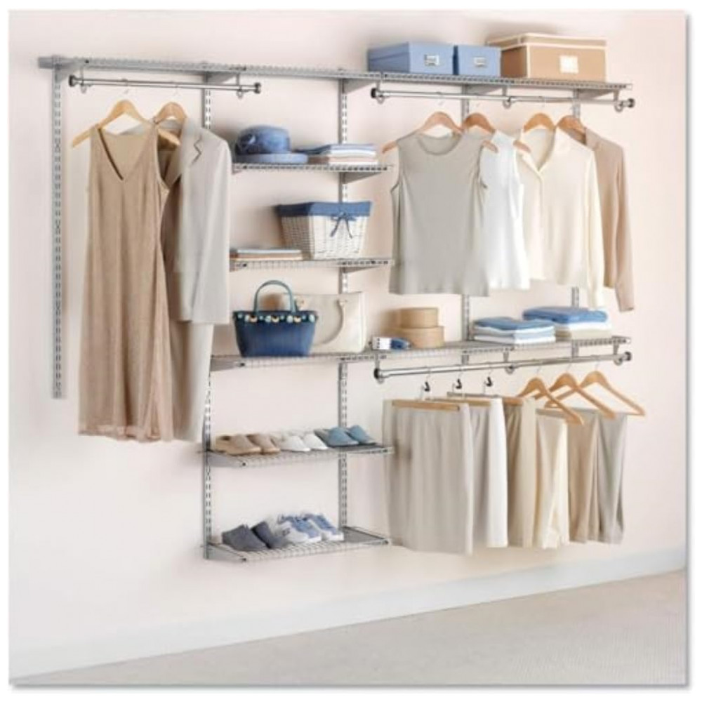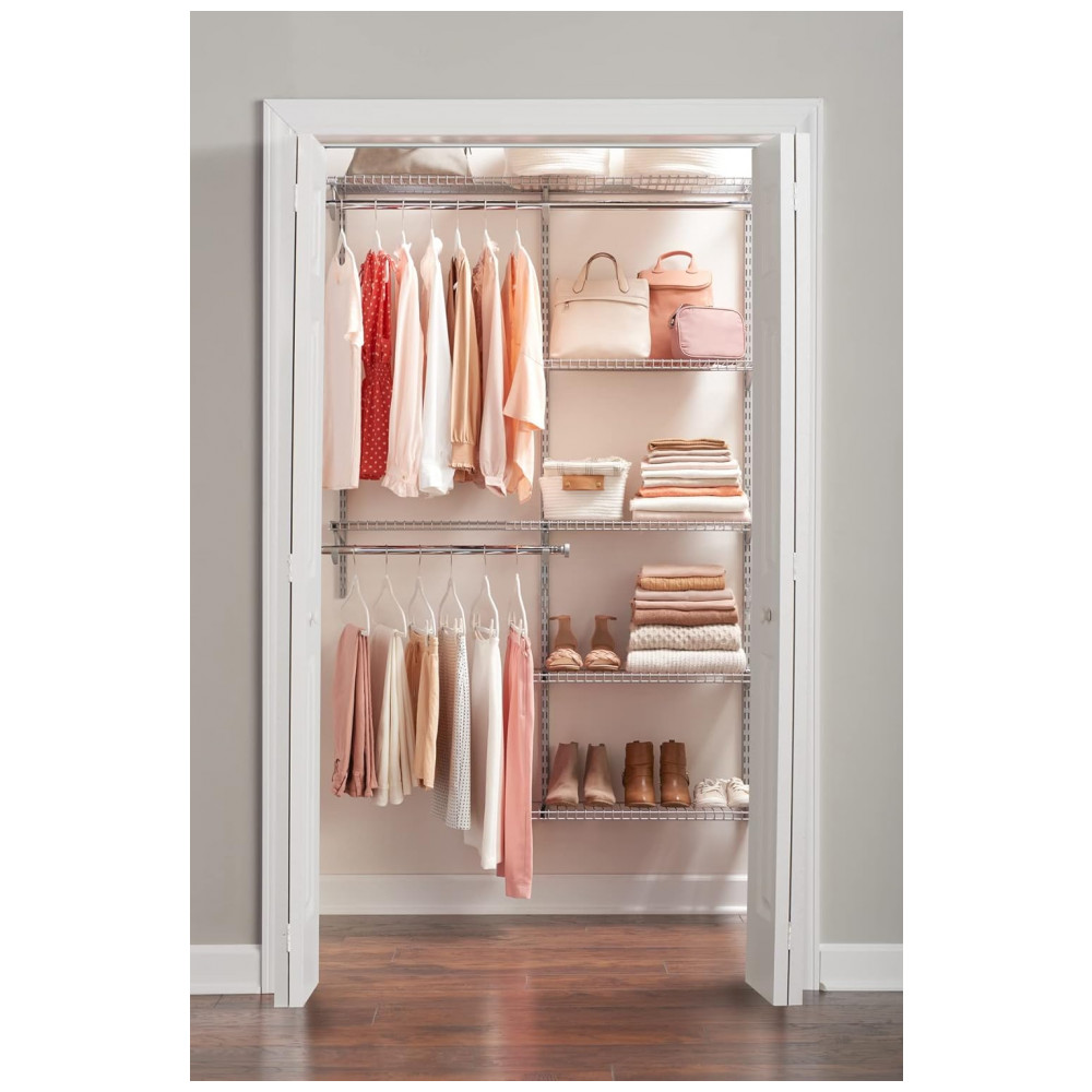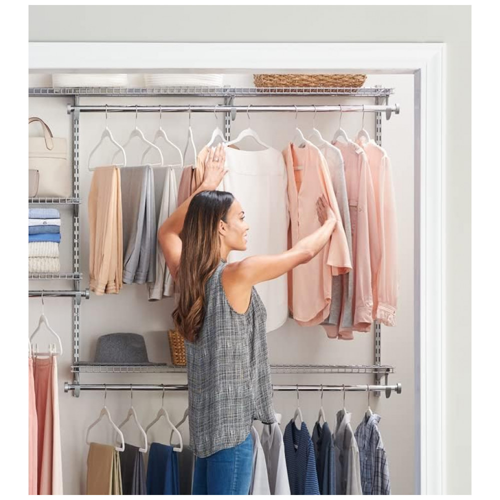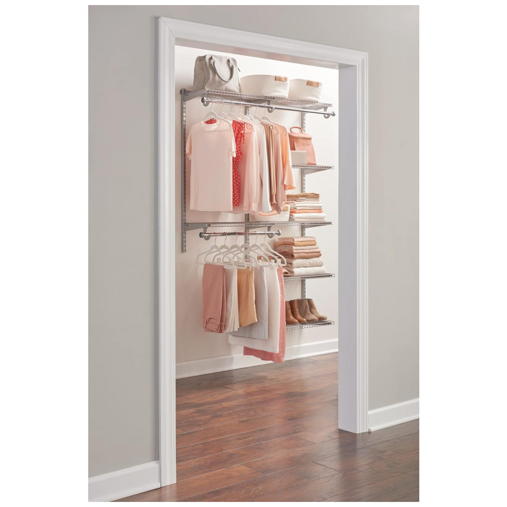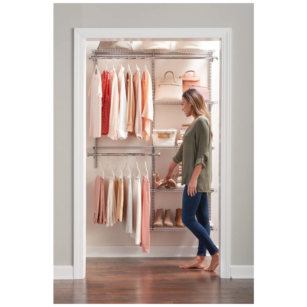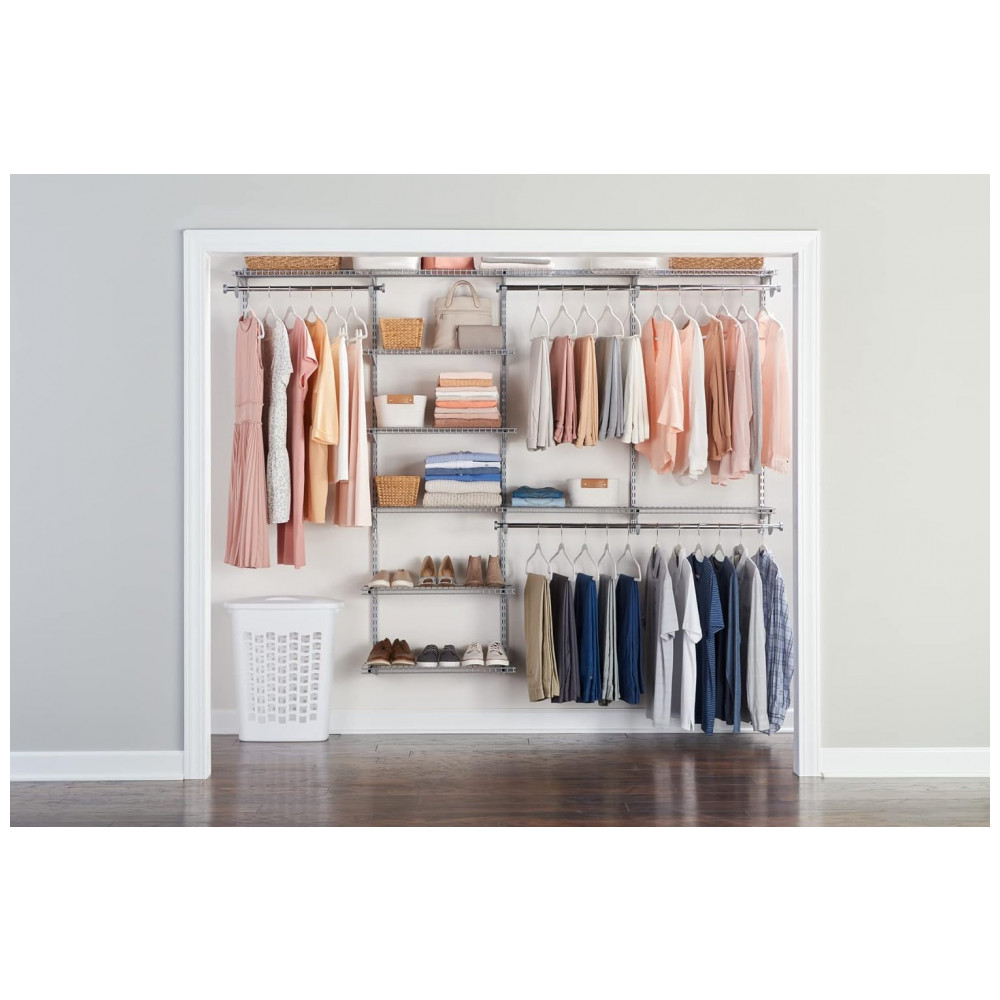 Kit Closet Aramado 1 a 4 Metros com Prateleiras Expansíveis e Hastes Telescópicas Personalizável Rubbermaid em Titânio
