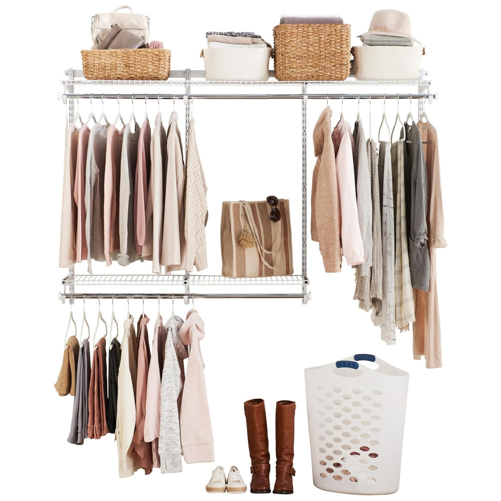 Kit Closet Aramado 18 Metros com Prateleiras Expansíveis e Hastes Telescópicas Personalizável Rubbermaid
