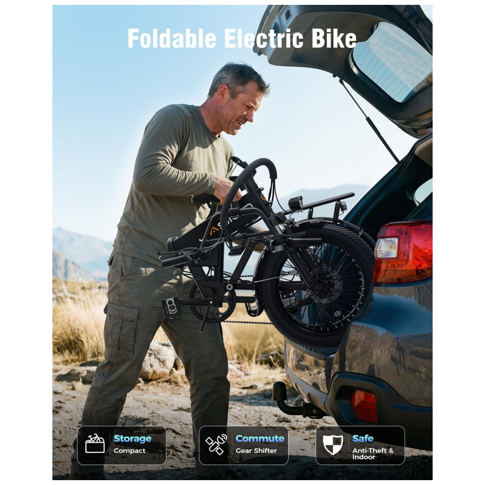 Estilo: Bicicleta elétrica dobrável com pneus largos para uso urbano e lazer